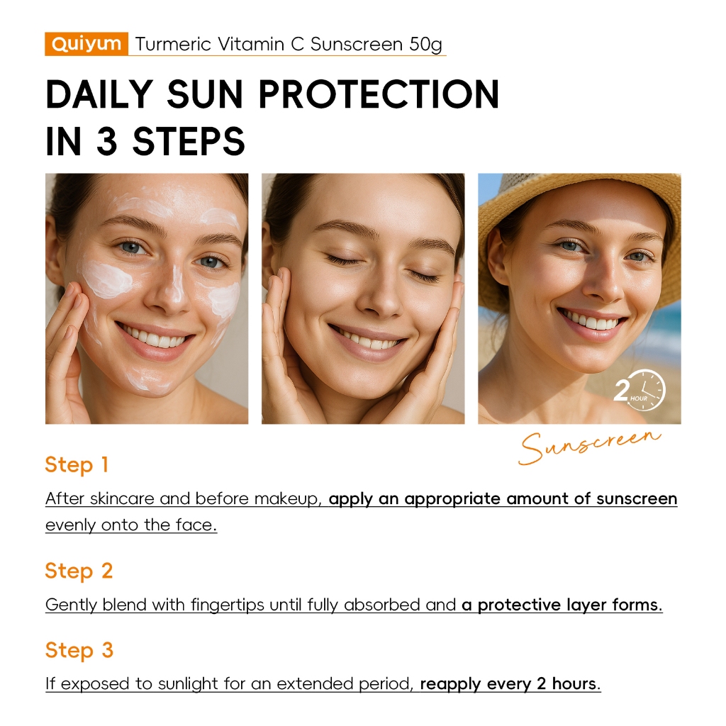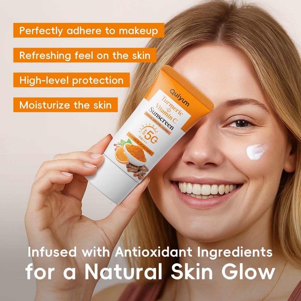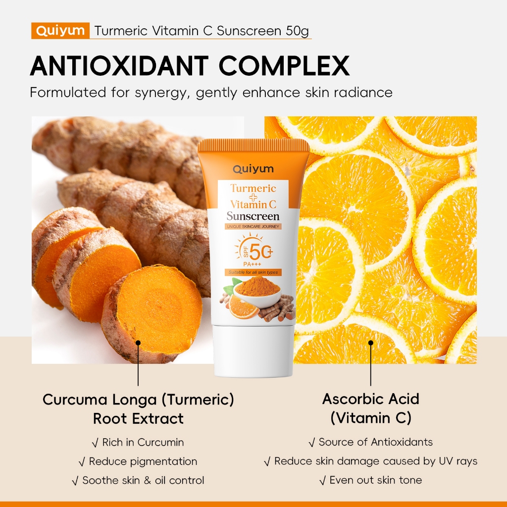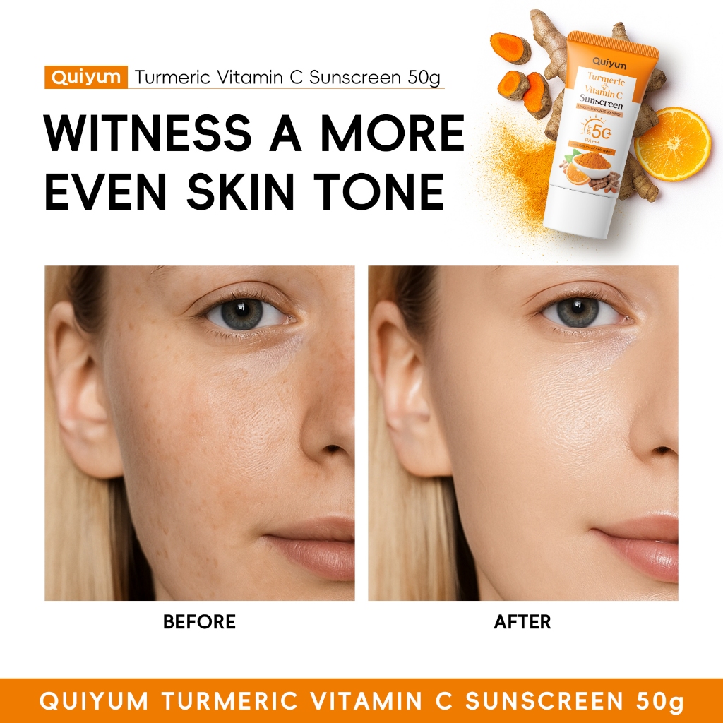 QUIYUM Protetor Solar Cúrcuma + Vitamina C Fps50 + PA + + – Proteção Iluminadora , Hidratante E Não Oleosa 50g