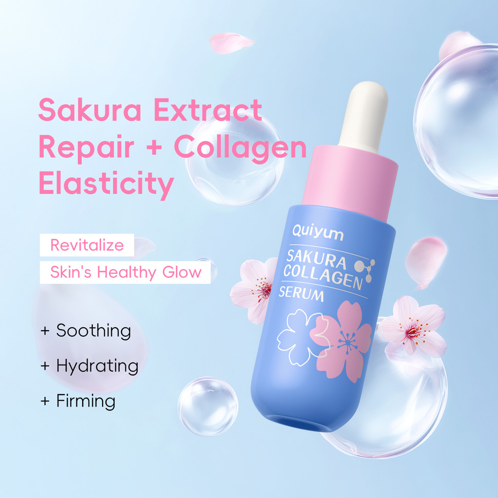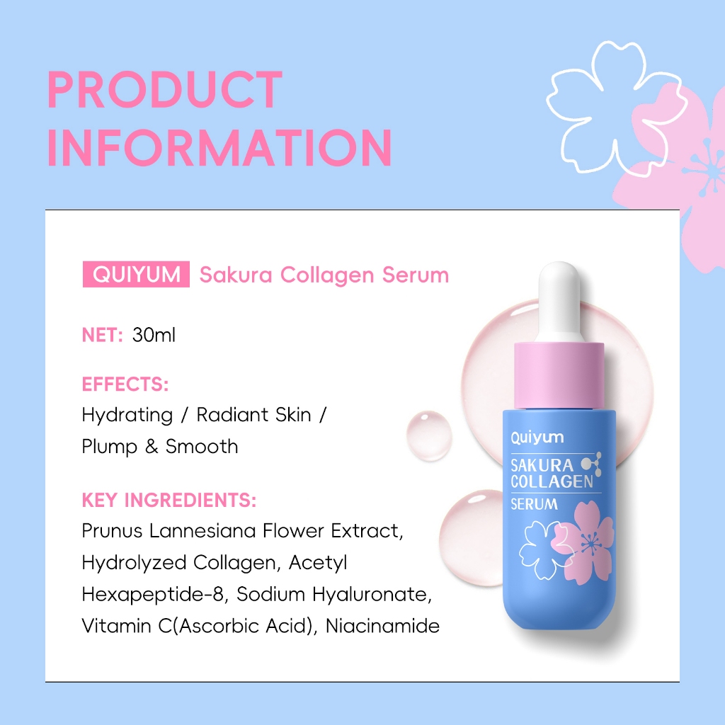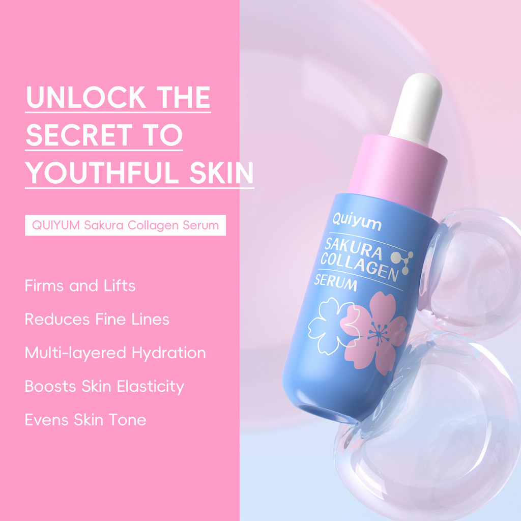 QUIYUM Sakura Collagen Serum 30ml-Para Pele De Vidro | Peptídeos E Soro Iluminador De Vitamina C Hidratante Preenchedor