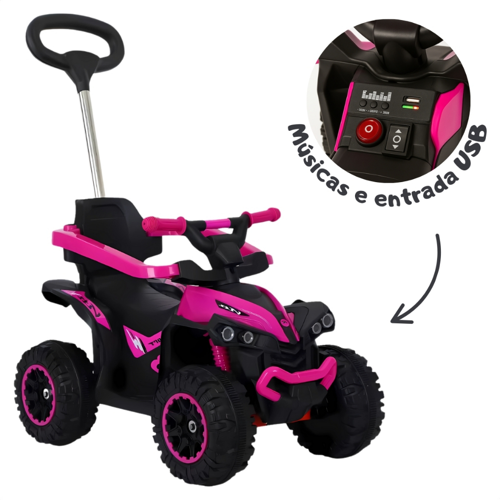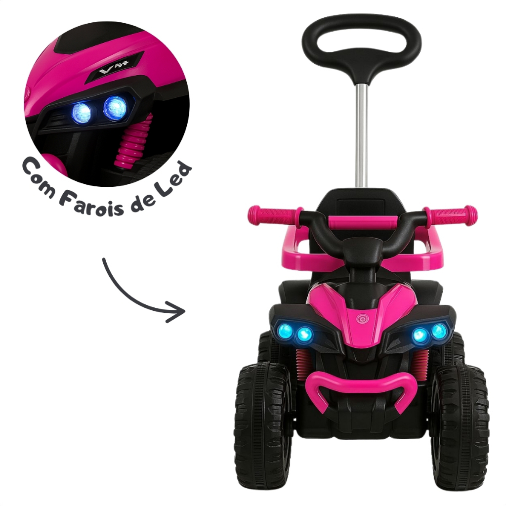 Quadriciclo Infantil Eletrico e Passeio com Aro de Proteção, Haste Direcionavel, Som e Luz Brinq Kids