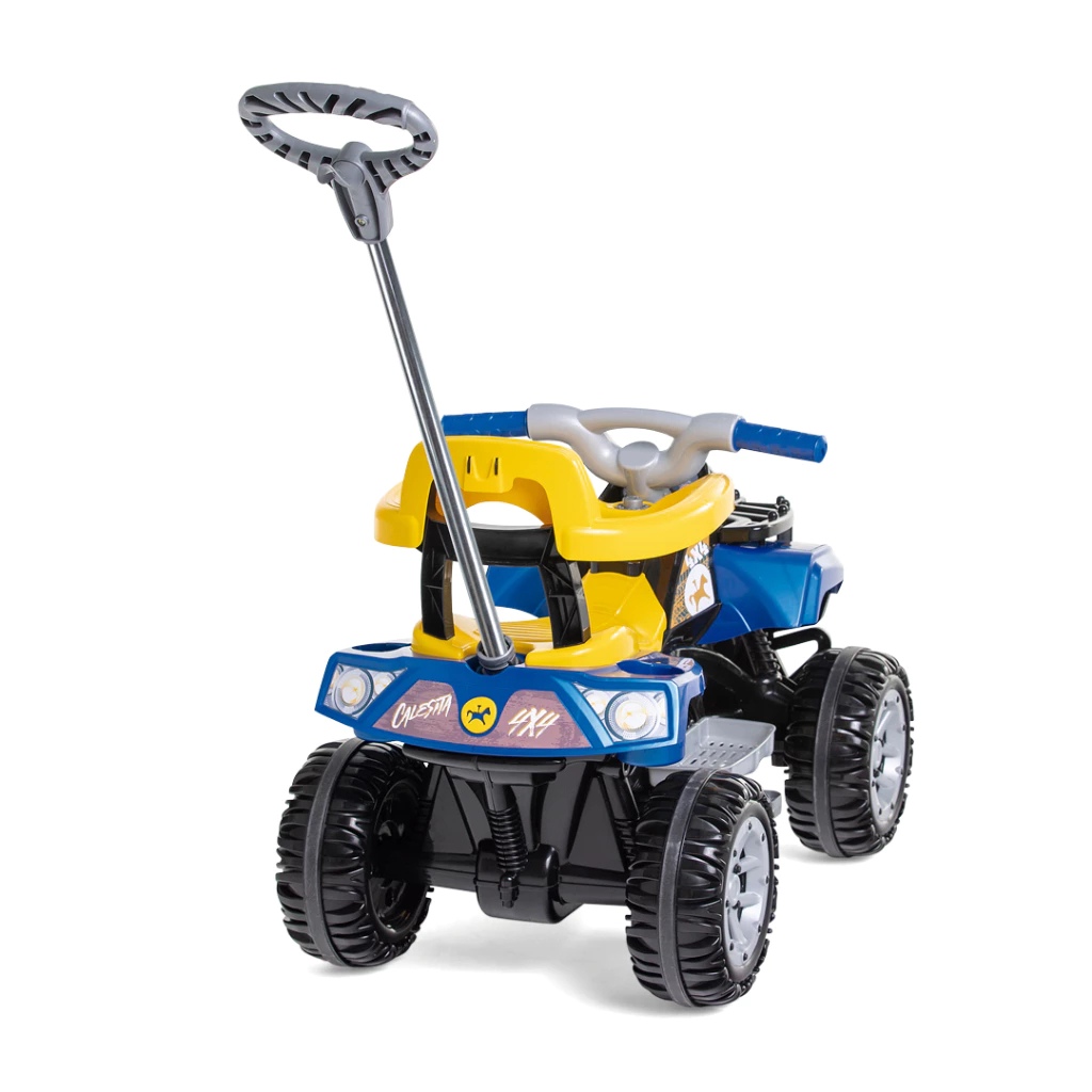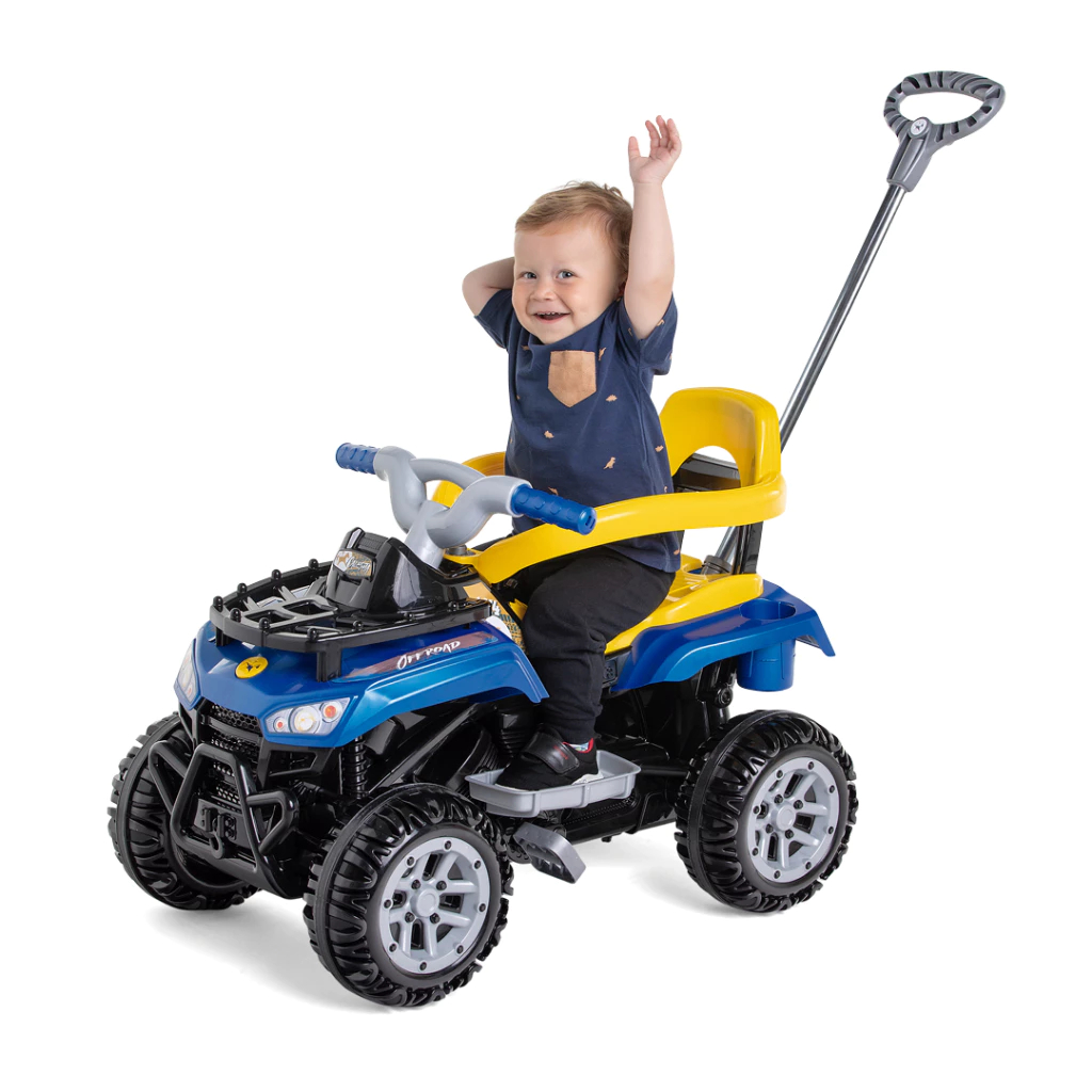 Quadriciclo Infantil Motoca Carrinho de Passeio Cross up Calesita com Haste Empurrador e Pedal