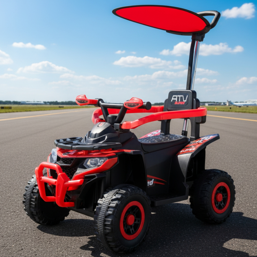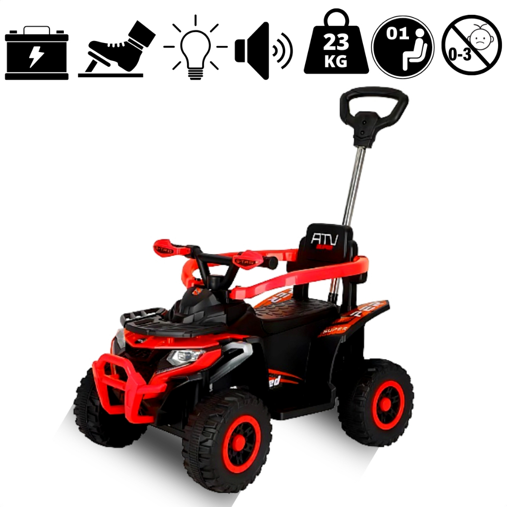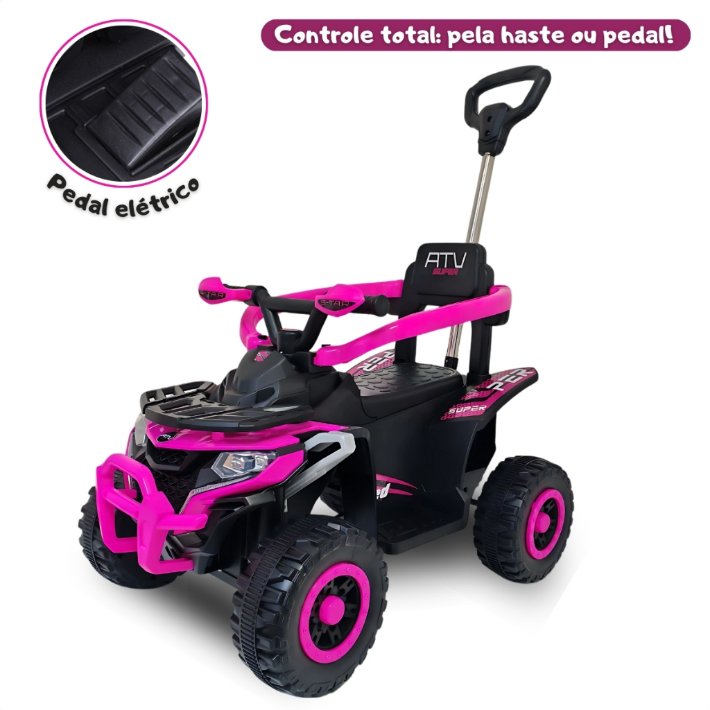 Quadriciclo Passeio Eletrico Infantil com Haste Direcionável Aro de Proteção Som Luz e Bateria 6v Brinq Kids