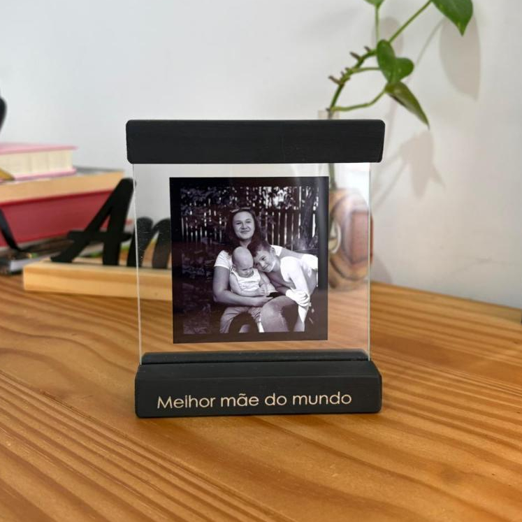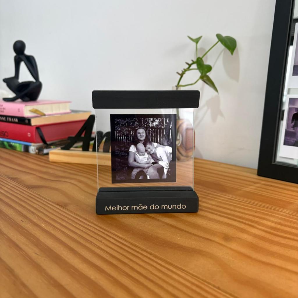 Quadrinho de Vidro com moldura de madeira 10x10 cm personalizado