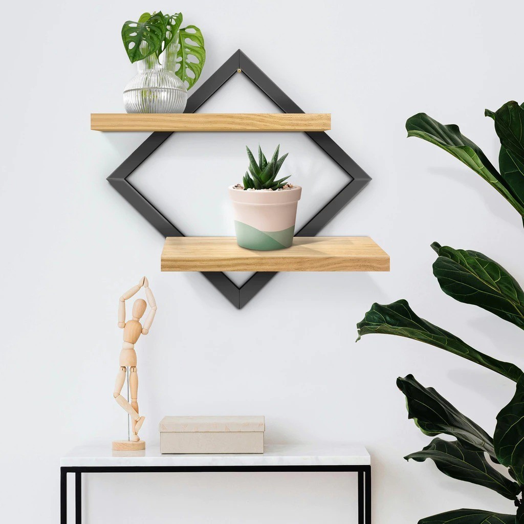 Quadro Decorativo Em Pinus Prateleira Dupla Nicho Expositor Organizador Decoração De Parede Com Bordas