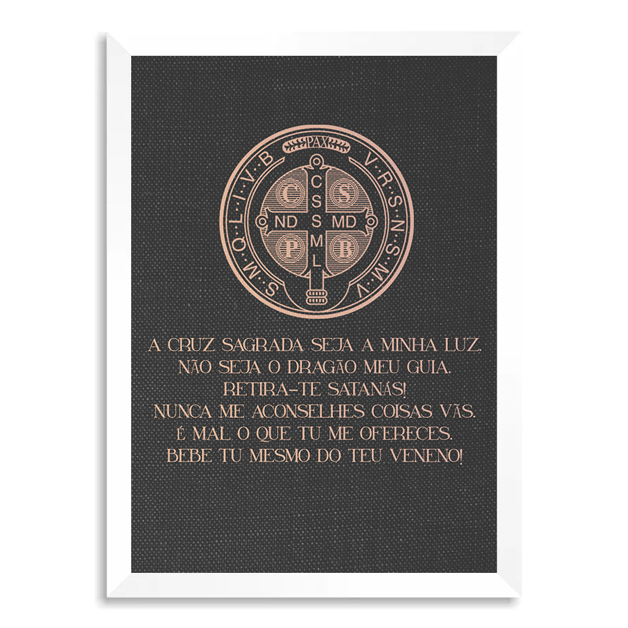 Quadro Oração de São Bento Fundo Preto Com Medalha