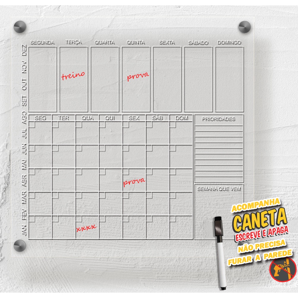 Quadro Planner De Parede Acrilico Transparente Semanal Mensal + Caneta