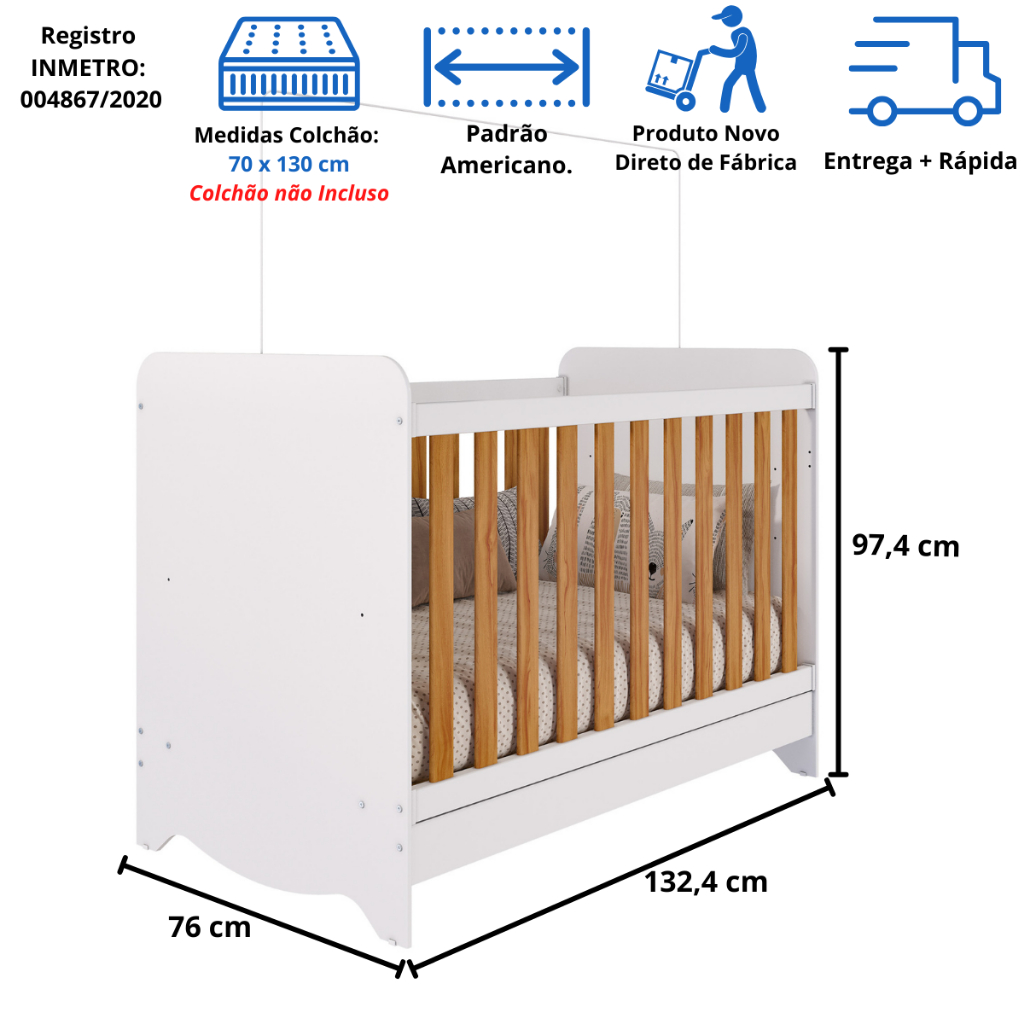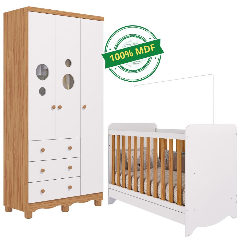 Quarto Bebê Completo Berço Americano Ben 3 em 1 Guarda Roupas 3 Portas 3 Gavetas Bolinha 100% MDF