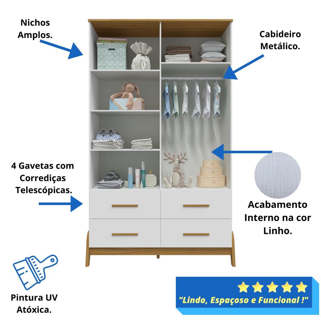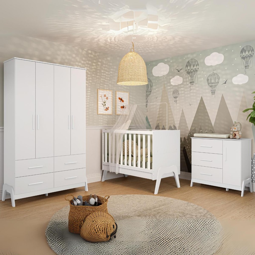 Quarto Bebê Completo Berço Americano Guarda Roupas Cômoda Arco Retrô 100% MDF