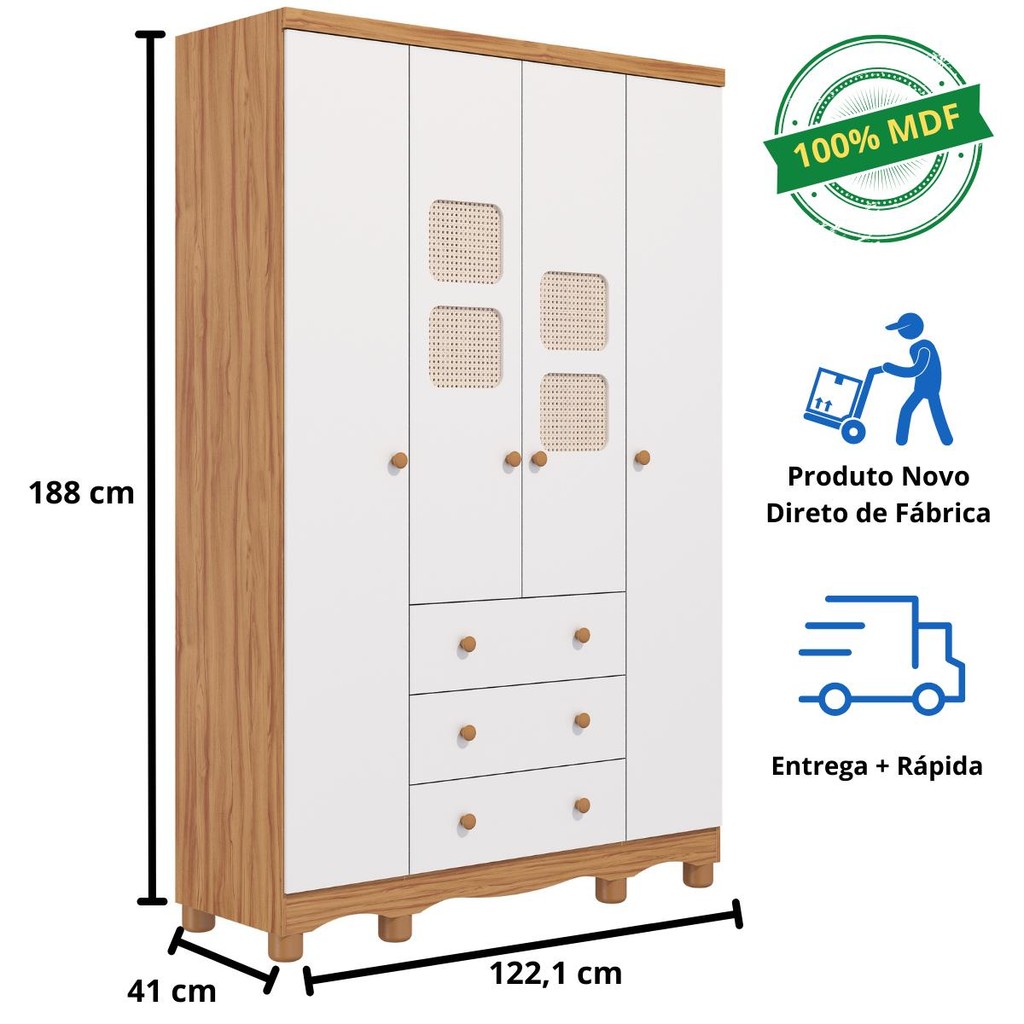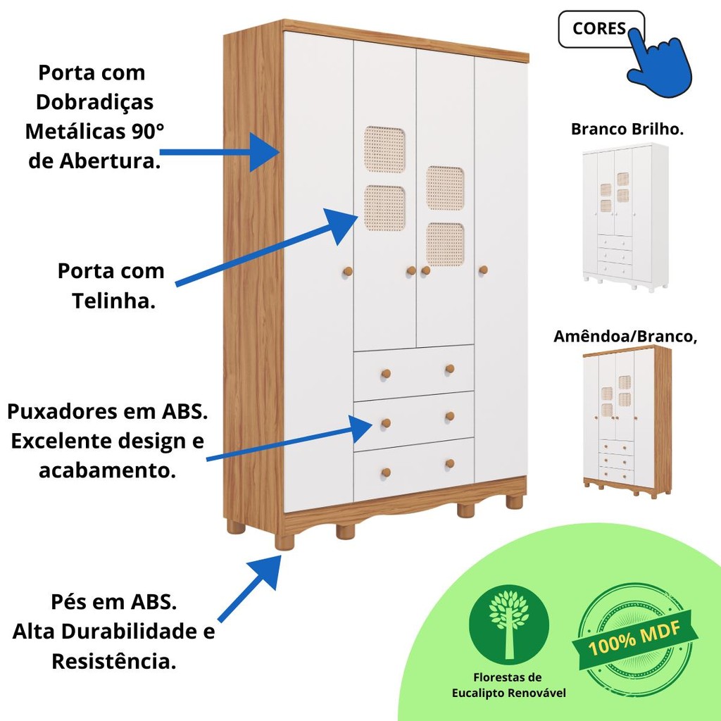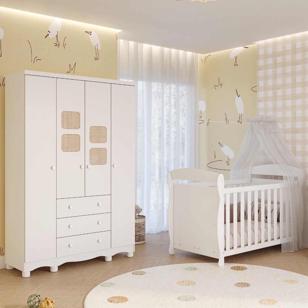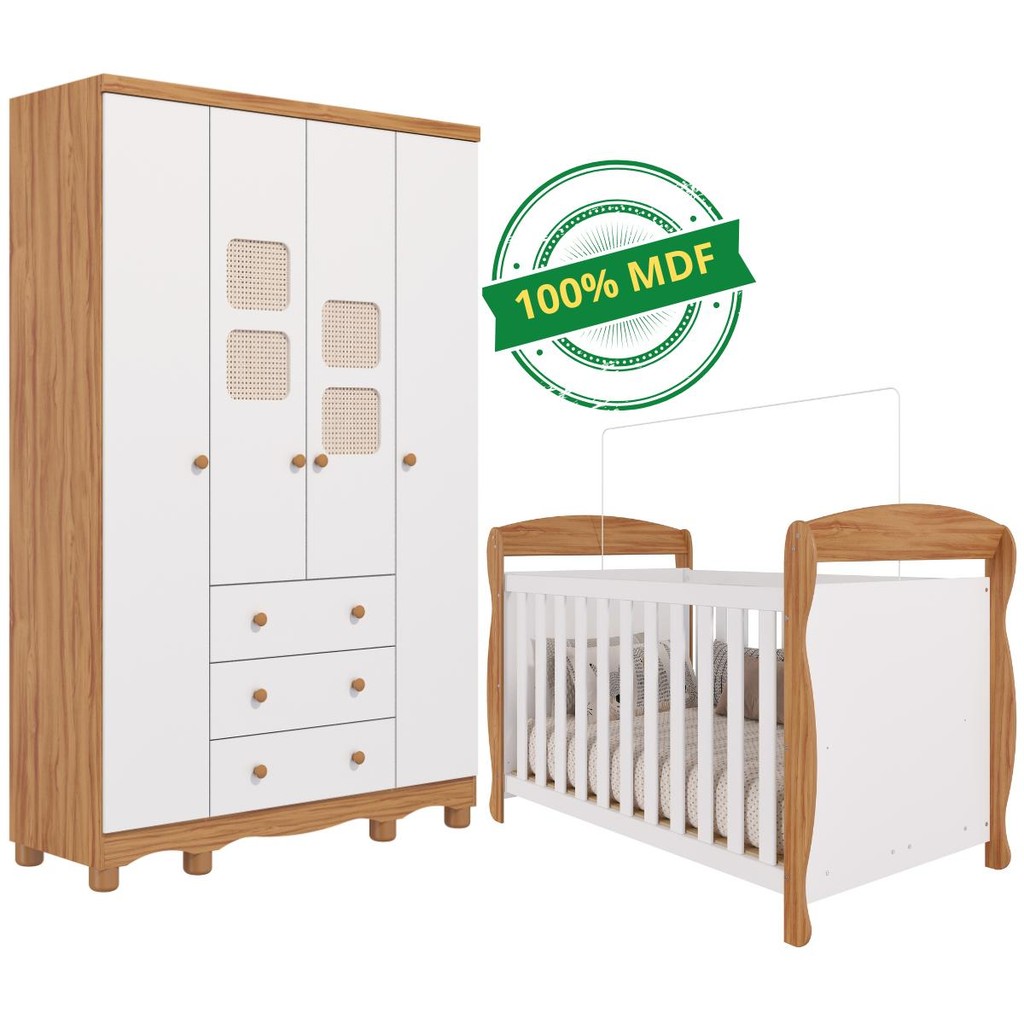 Quarto Bebê Completo Berço Americano Marquesa 3em1 Guarda Roupas 4 Portas 3 Gavetas 100% MDF Telinha