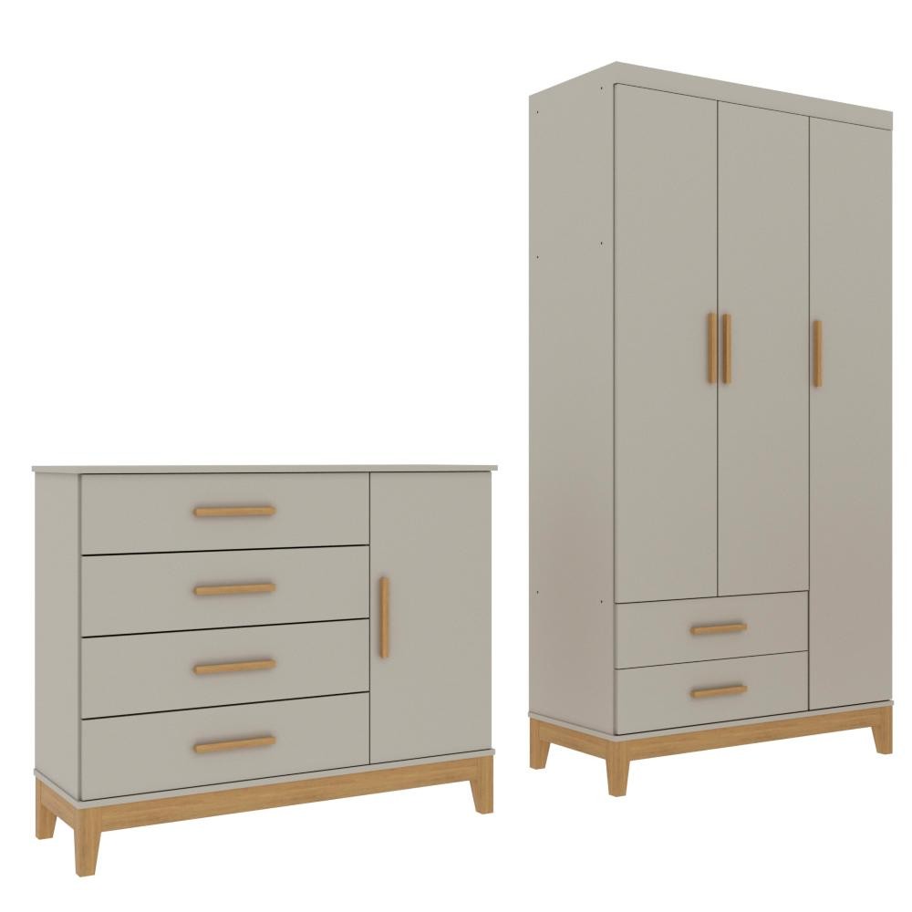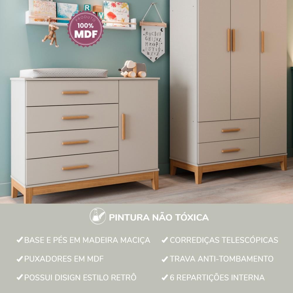Quarto Bebê Completo Guarda Roupa 3 Portas Cômoda 4 Gavetas 1 Porta Hellen 100% MDF