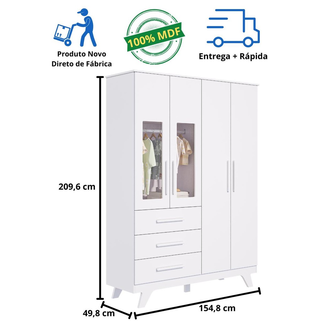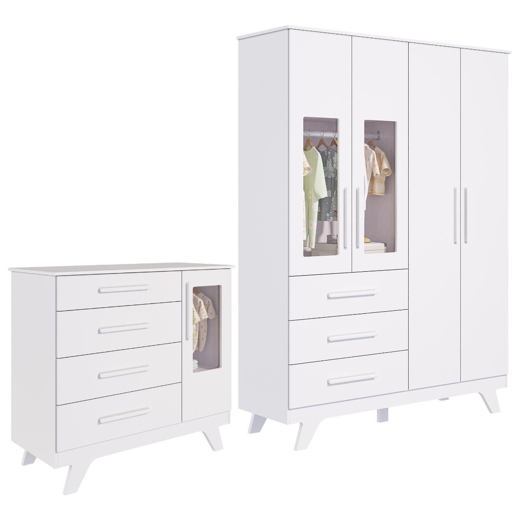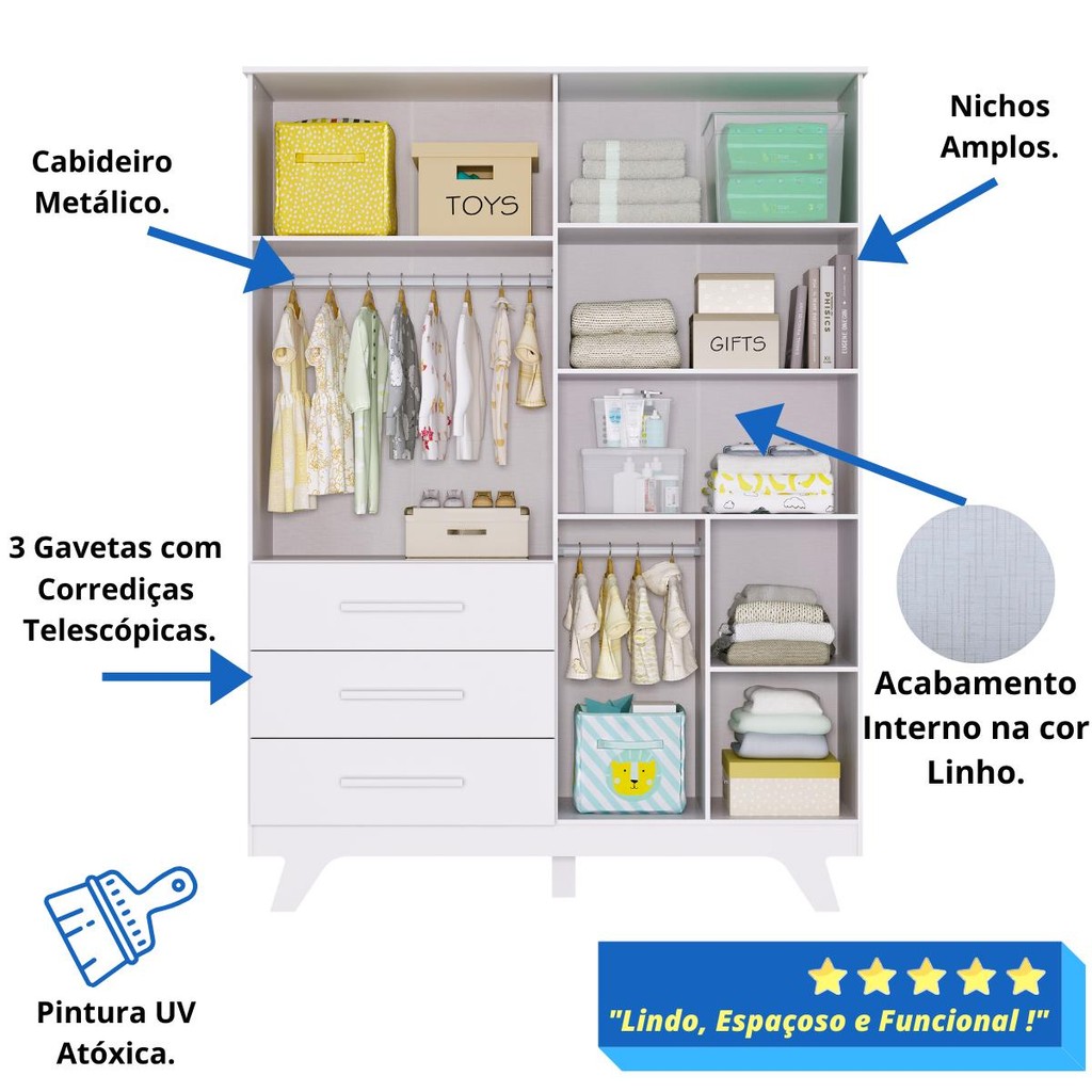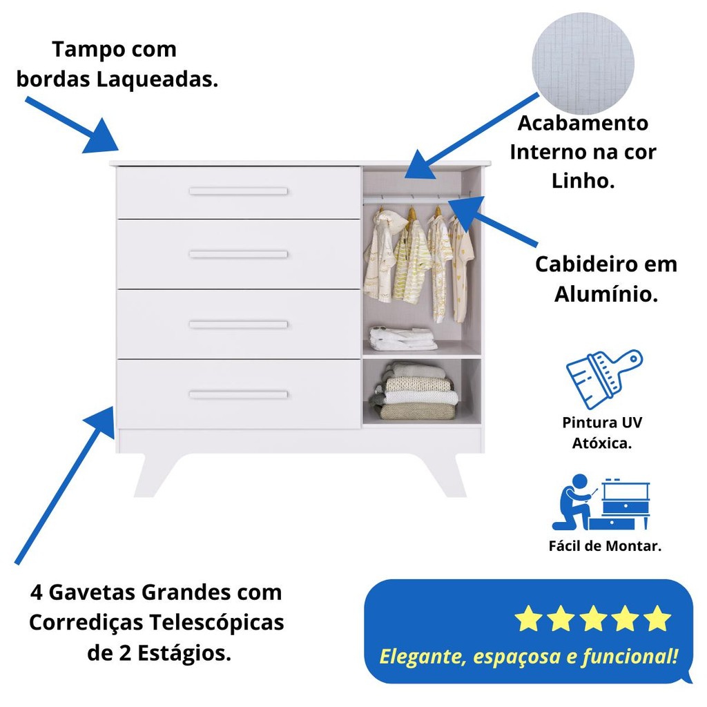 Quarto Bebê Retrô Janelado Completo Guarda Roupa 4 Portas 3 Gavetas Cômoda 4 Gavetas 1 Porta 100%MDF