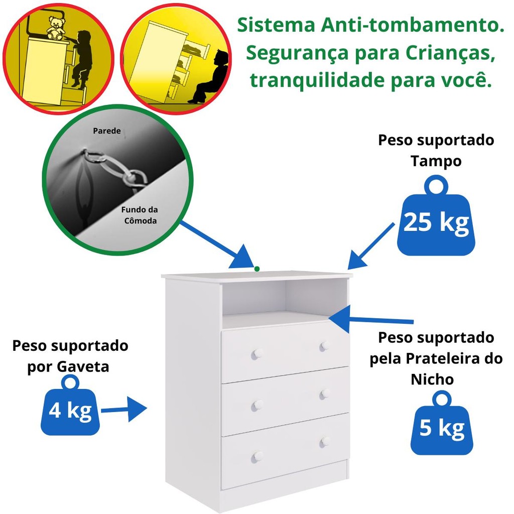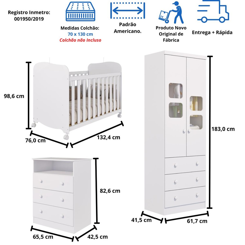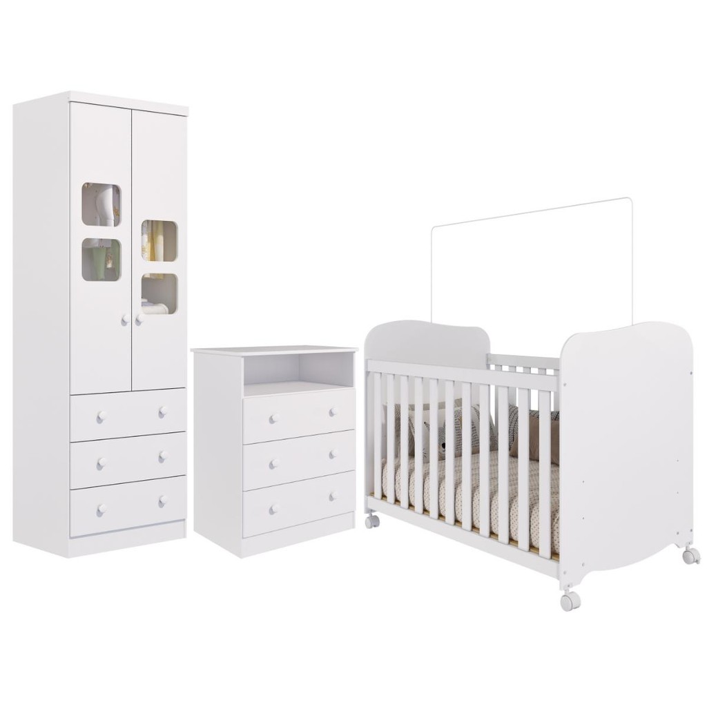 Quarto Bebe Completo Berço Americano Uli Guarda Roupa 2 Portas Uli Gaveteiro 3 Gavetas Smim 100% MDF