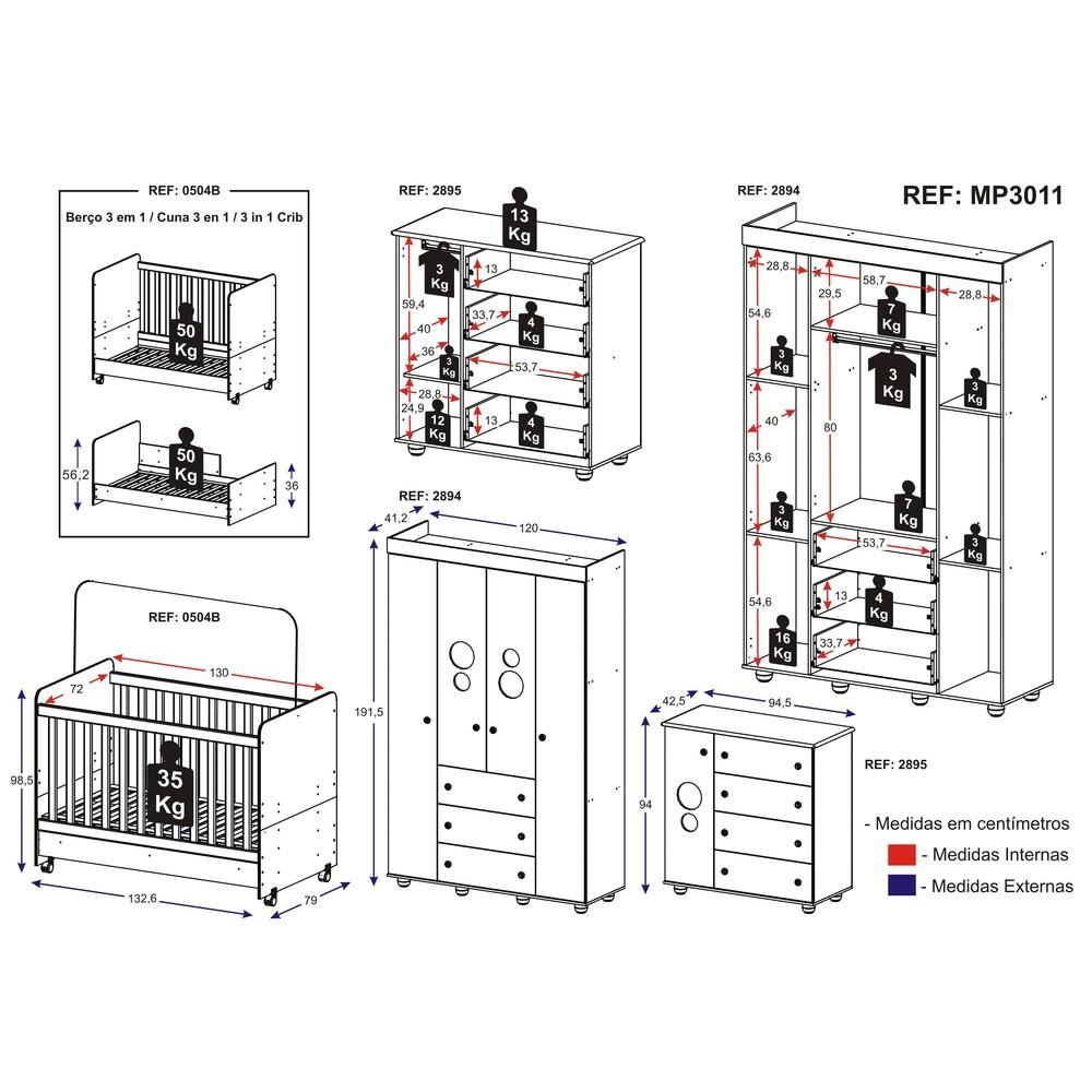 Quarto Completo Infantil Pimpolho com berço 3 em 1 Multimóveis Branco com 03 anos de Garantia
