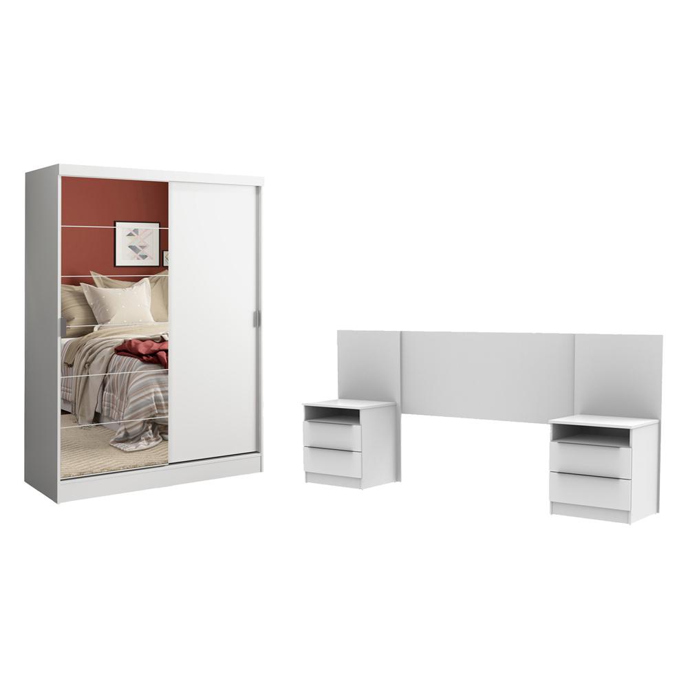 Quarto Completo com Guarda Roupa Luke e Cabeceira com 2 Mesas Laterais Madesa - Branco