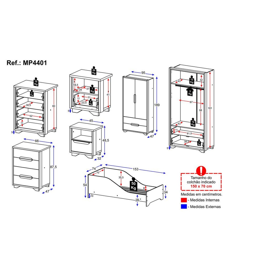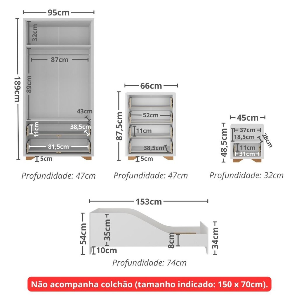 Quarto Infantil Completo com Minicama para Colchão 150x70cm Multimóveis MP4401