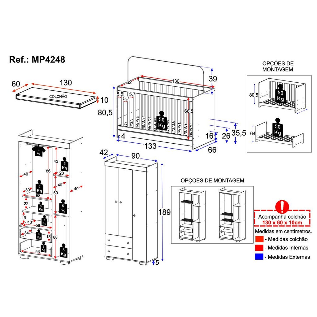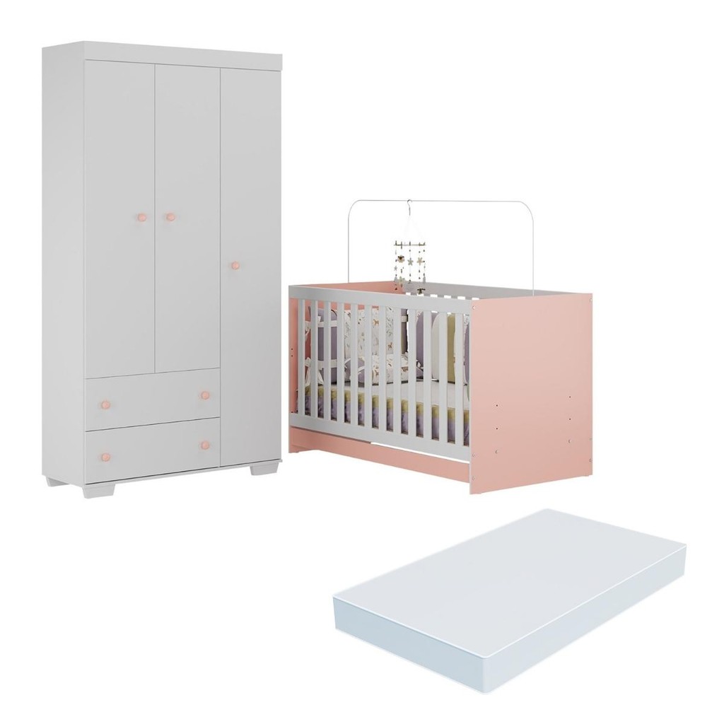 Quarto Infantil com Berço Colchão Incluso e Guarda-Roupas Algodão Doce Multimóveis MP4248