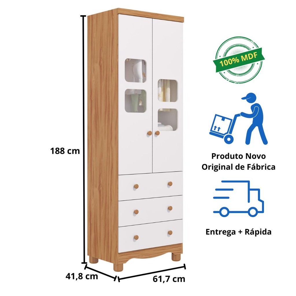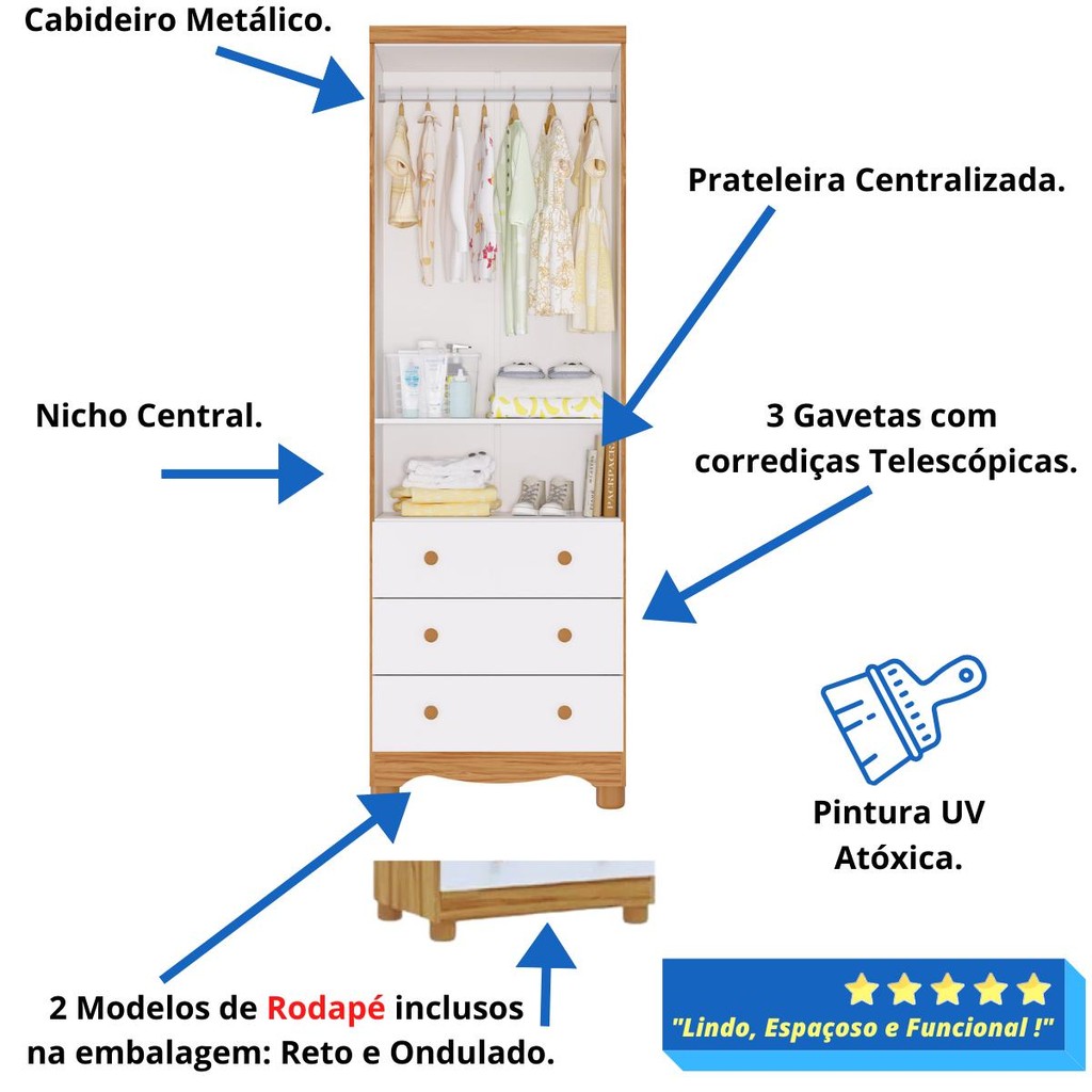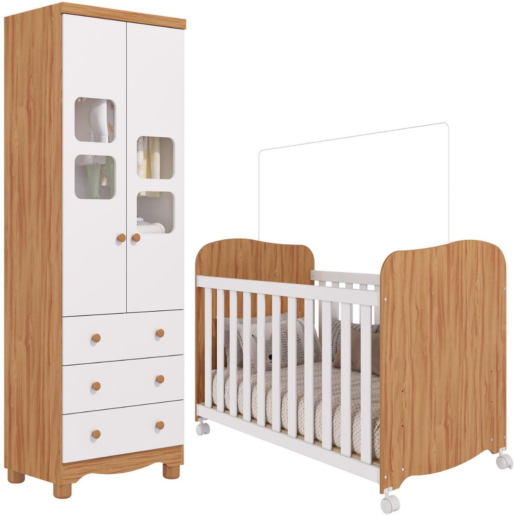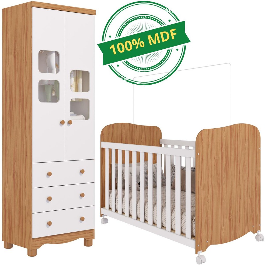 Quarto de Bebê Completo Berço Americano Uli Guarda Roupa Uli 2 Portas 100% MDF