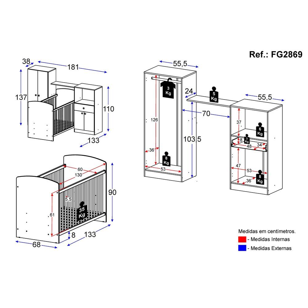 Quarto de Bebê Completo Berço/Guarda-Roupa/Cômoda FG2869 Multimóveis Branco