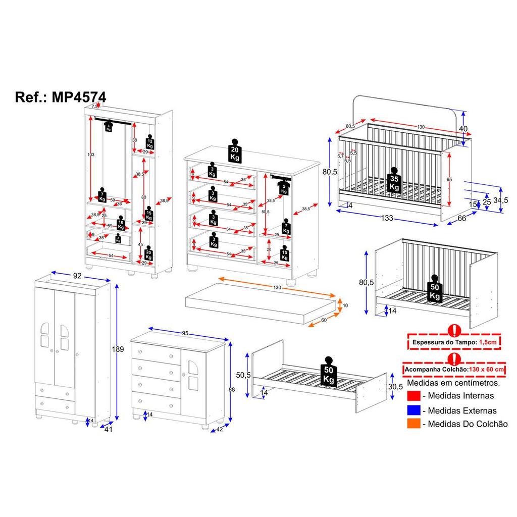 Quarto de Bebê Completo com Berço 3 em 1 com Colchão Incluso Nina Multimóveis MP4574