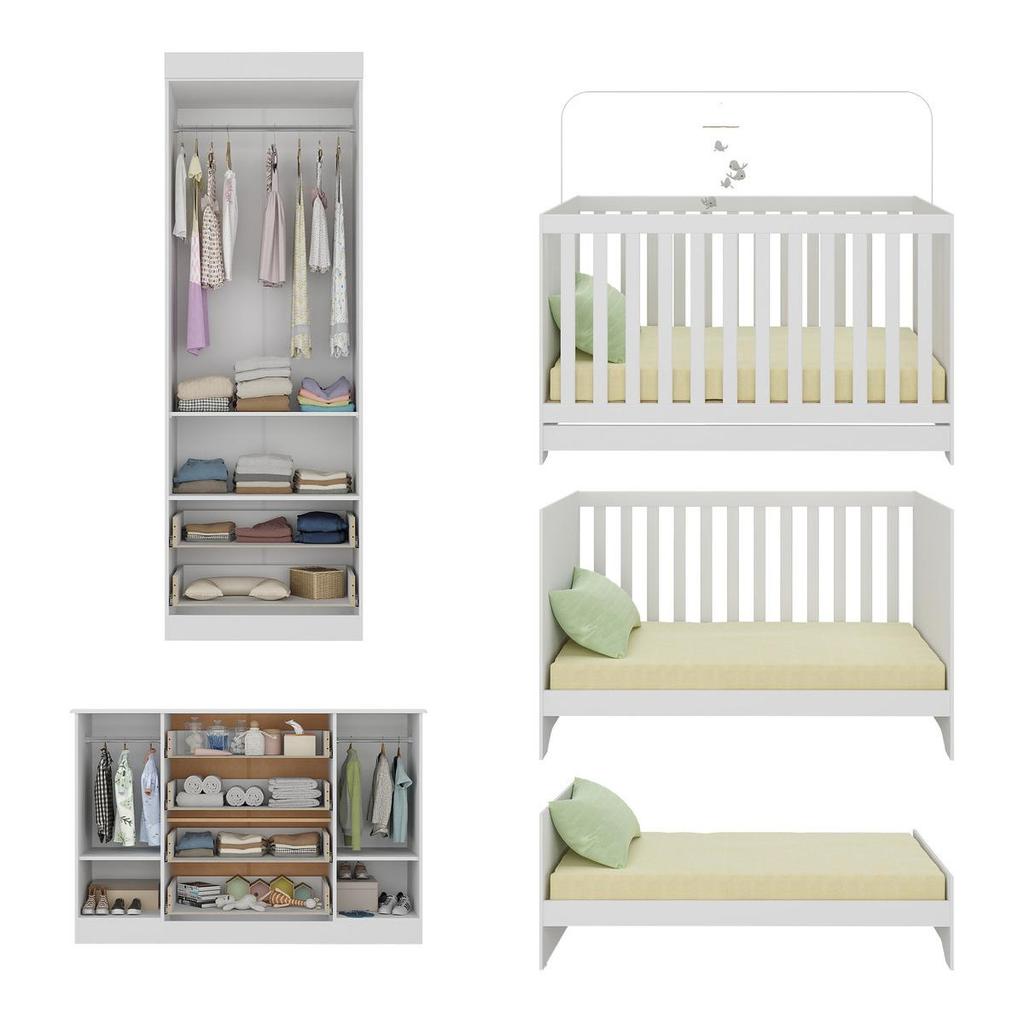 Quarto de Bebê Completo com Berço Americano 3 em 1 Colchão Incluso Encanto Multimóveis MP4609