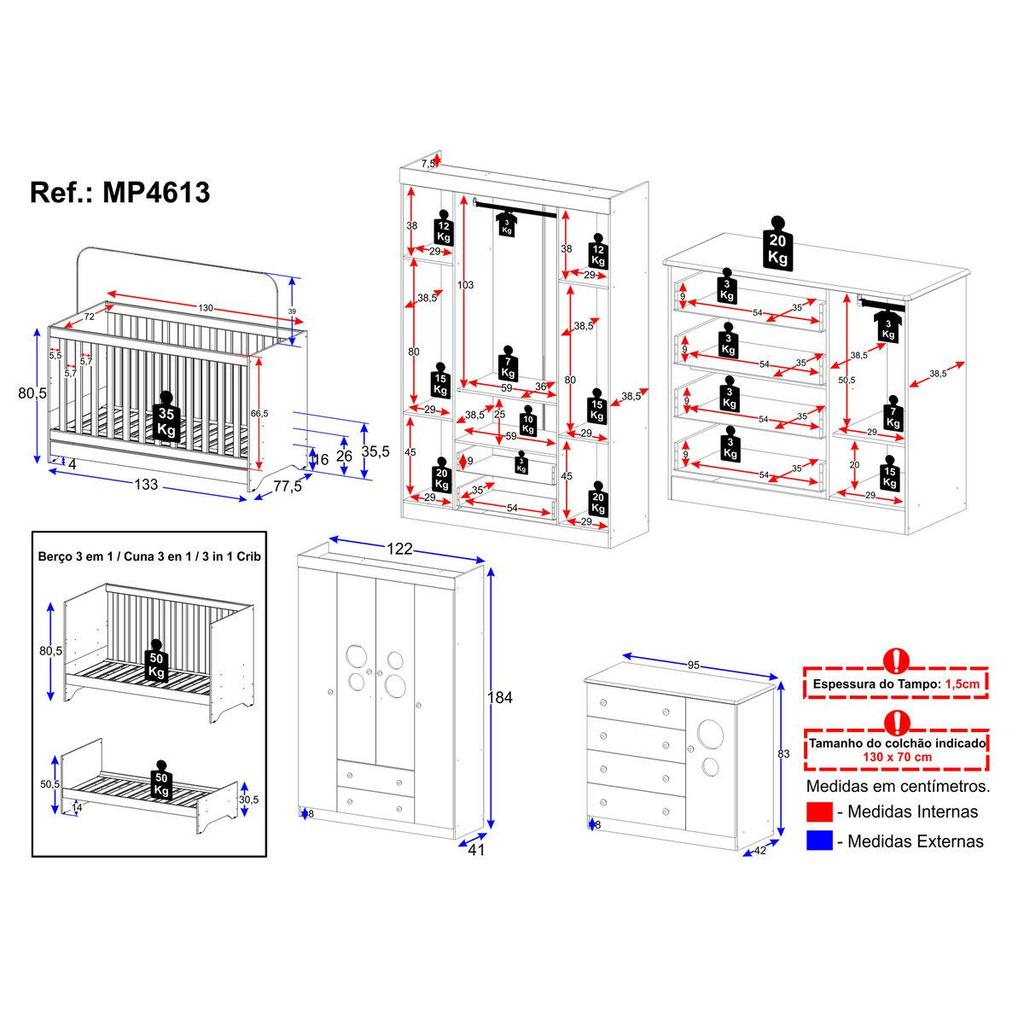 Quarto de Bebê Completo com Berço Americano 3 em 1 Pirulito Multimóveis MP4613