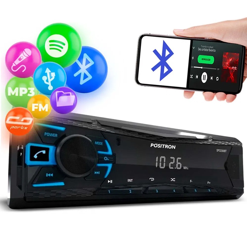 Rádio Automotivo MP3 Player Positron SP2230BT Bluetooth, USB, Auxiliar e FM