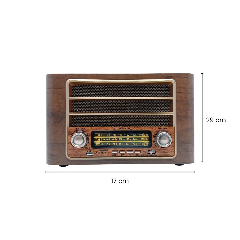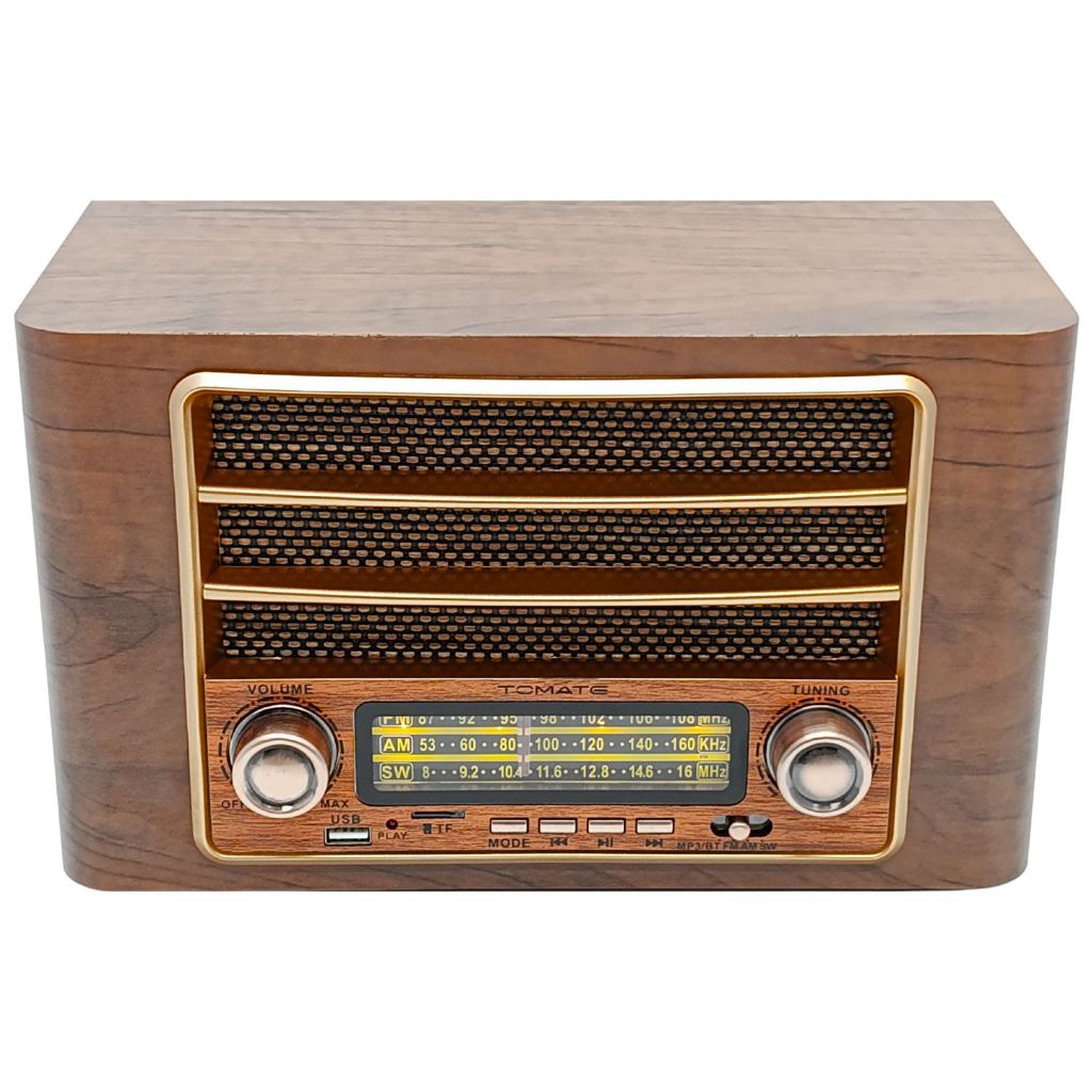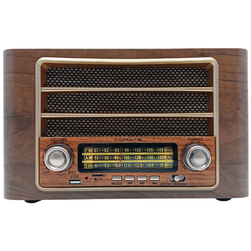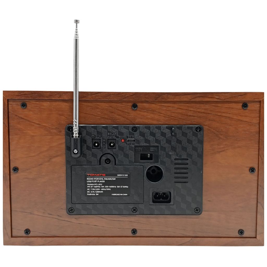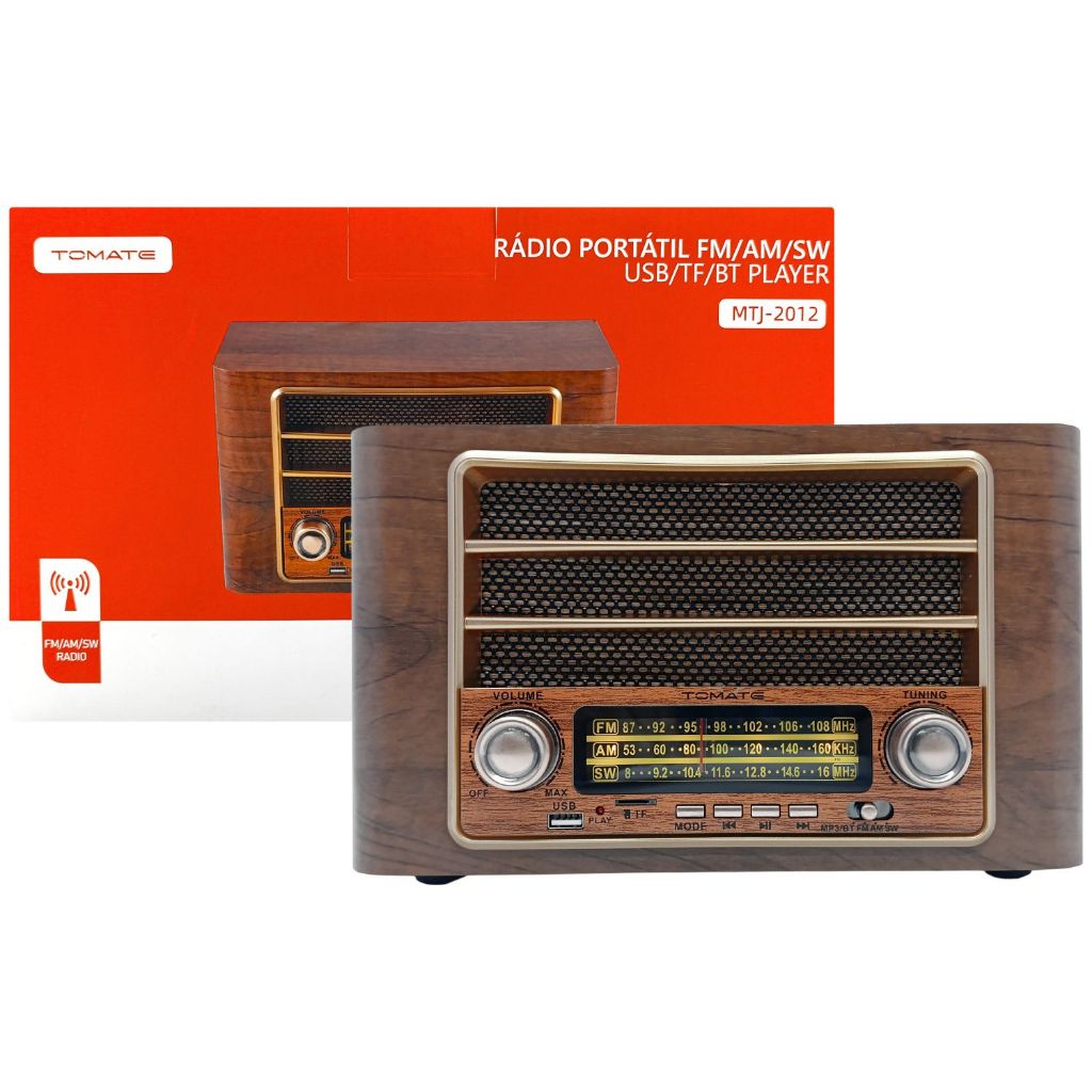 Rádio Portátil Retro AM/FM USB com Bluetooth 3W Caixa de Som Bivolt - Tomate MTJ-2012
