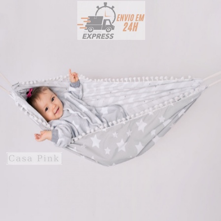 REDE DE BERÇO COM POMPOM NAS LATERAIS Dupla Face com Pompom