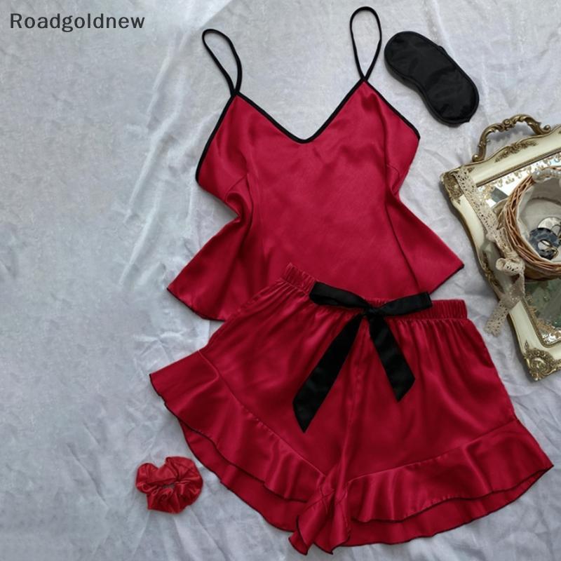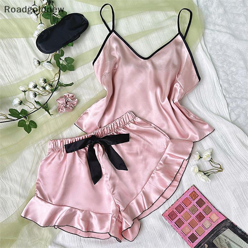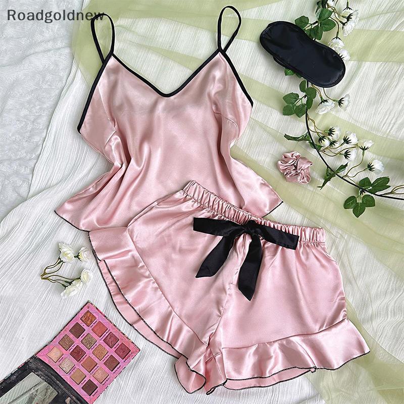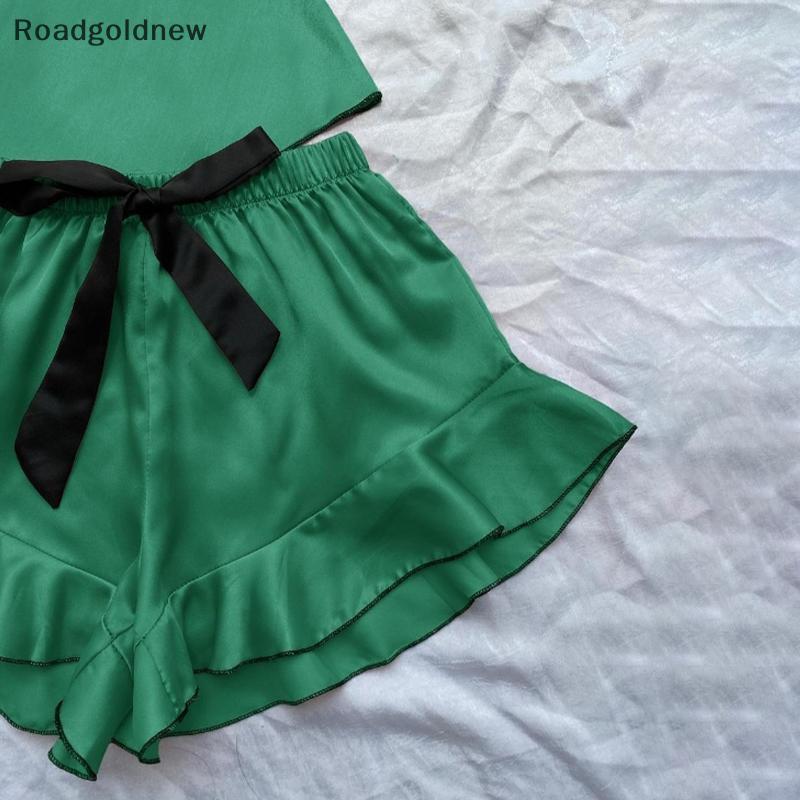 RGN Moda Casa Casual Sexy Arco Cetim Camisola Shorts Pijama Conjunto Feminino NW