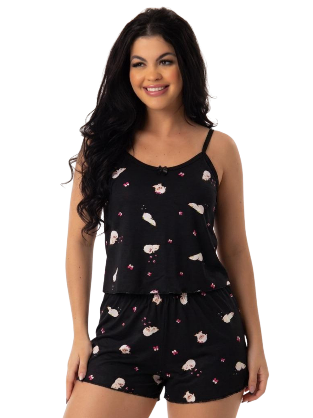 RL Magazzine Pijama Feminino Conjunto Short Doll Blusa E Short Suede Estampado Roupa De Dormir