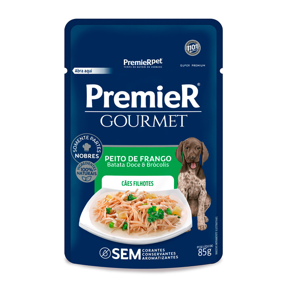 Ração Úmida Premier Gourmet Cães Filhotes Peito de Frango Batata Doce e Brócolis 85g