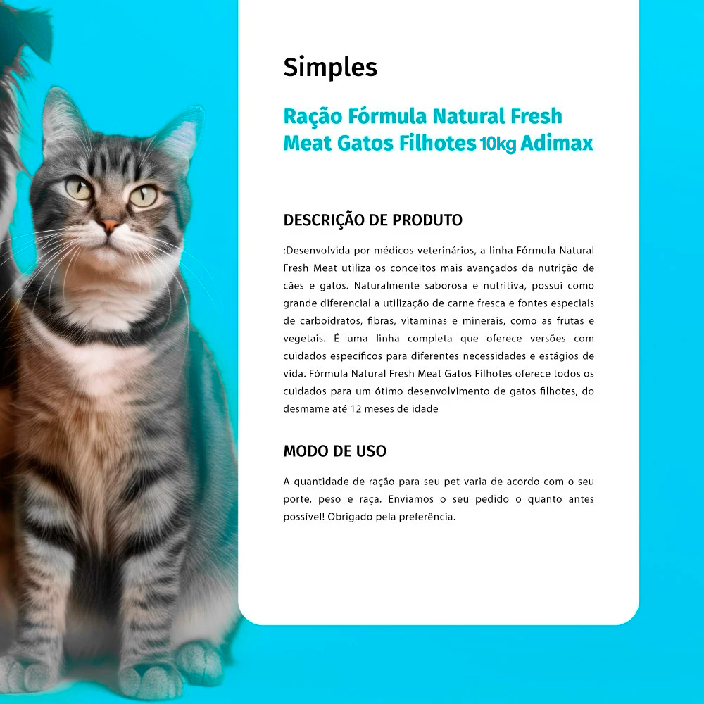 Ração Fórmula Natural Fresh Meat Gatos Filhotes 10,1kg Adimax
