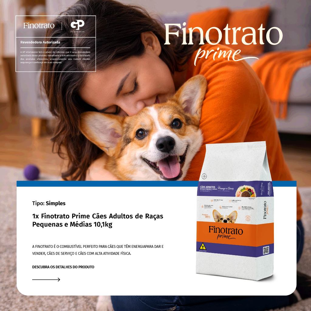 Ração Finotrato Prime Premium Especial Cães Adultos Raças Pequenas e Médias Sabor Frango e Cereais 10,1kg