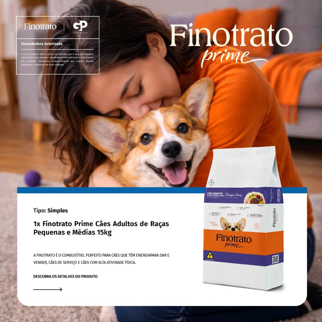 Ração Finotrato Prime Premium Especial Cães Adultos Raças Pequenas e Médias Sabor Frango e Cereais 15kg