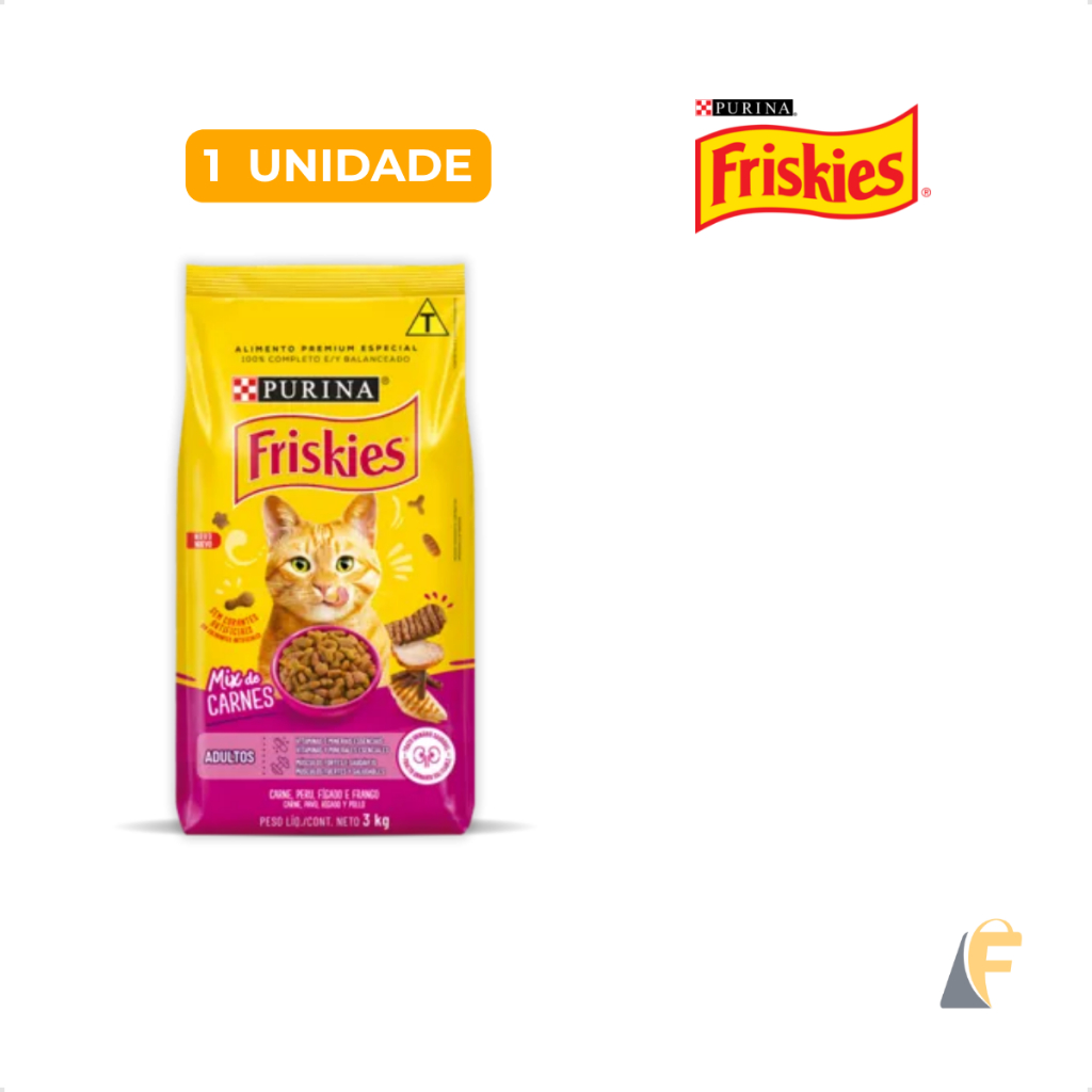 Ração Friskies Gatos 3kg Sabor Mix de Carne Sem Corantes Purina