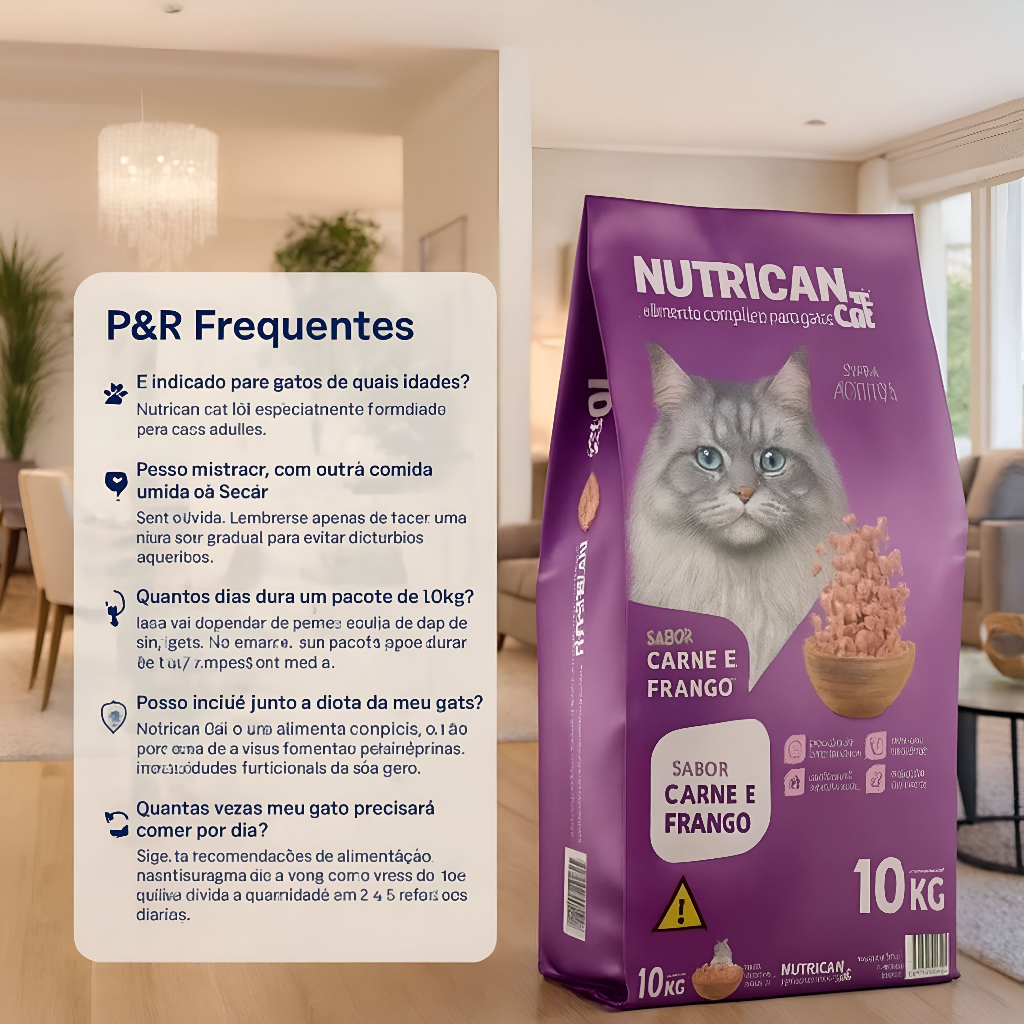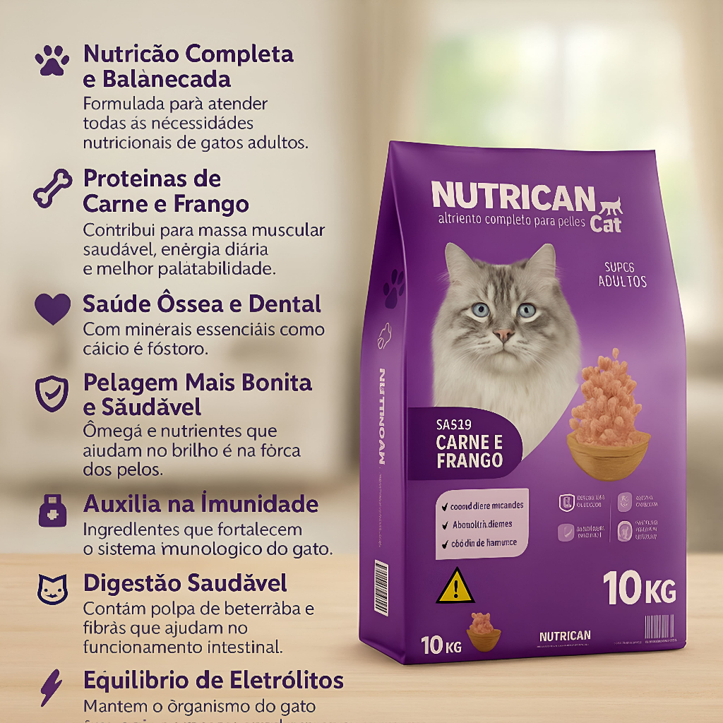 Ração Para Gato Nutrican Cat Adultos (Carne e Frango) 10,1kg - Alimento para gatos