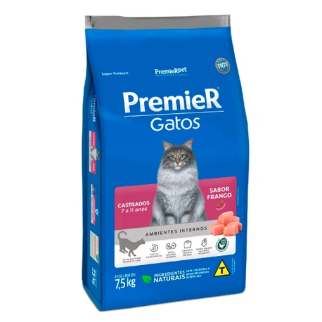 Ração Premier Ambientes Internos Gatos Adultos Castrados 7 A 11 Anos Frango 7,5kg
