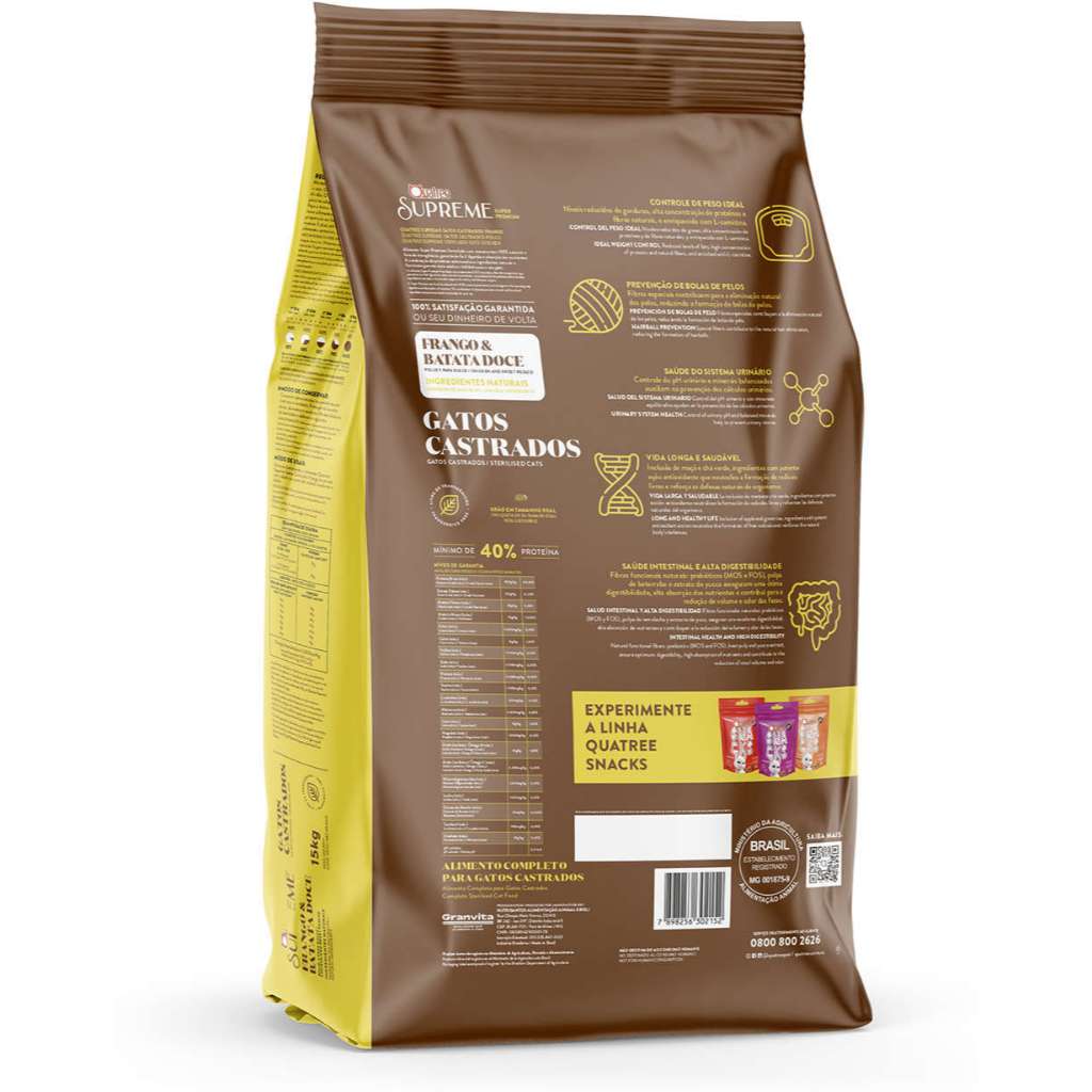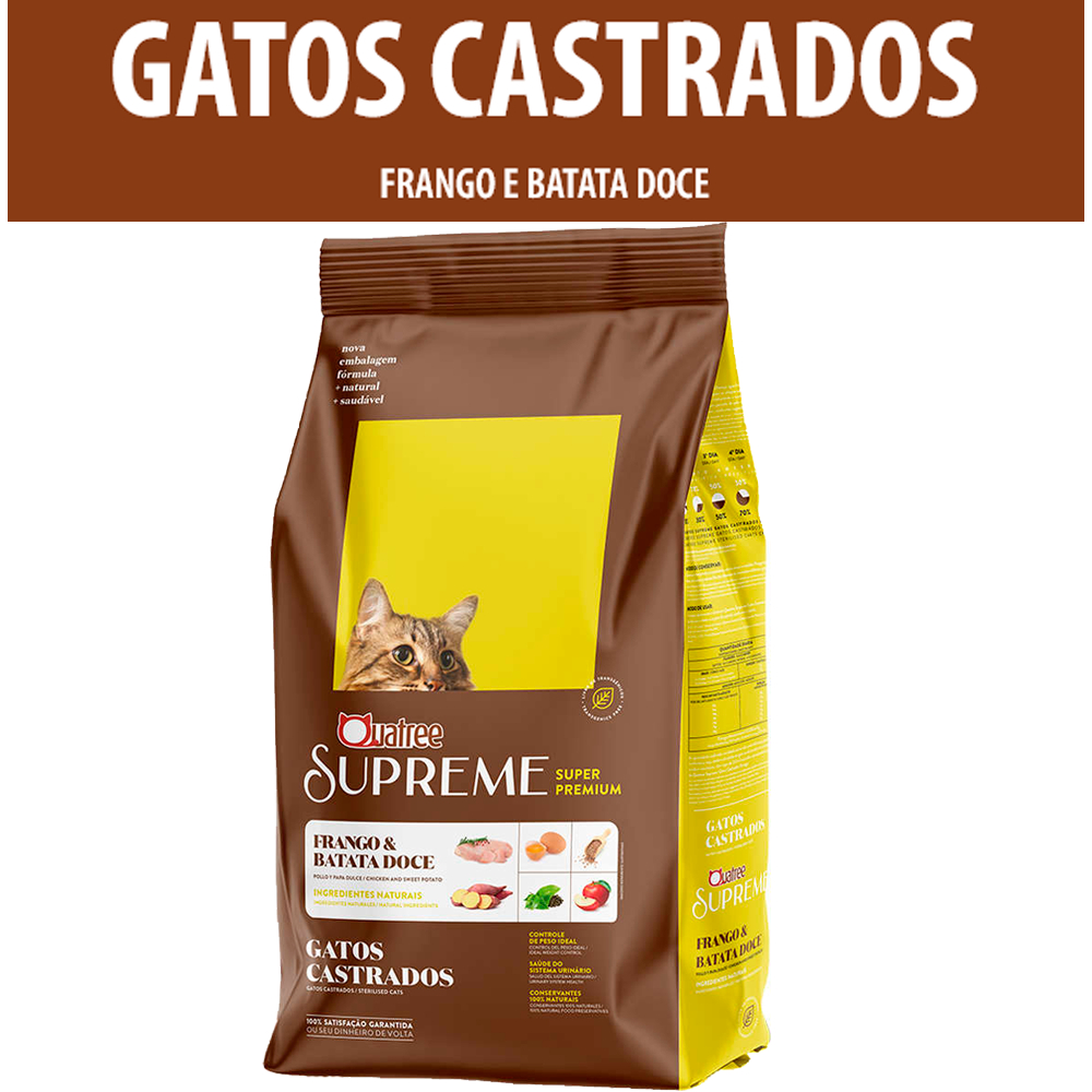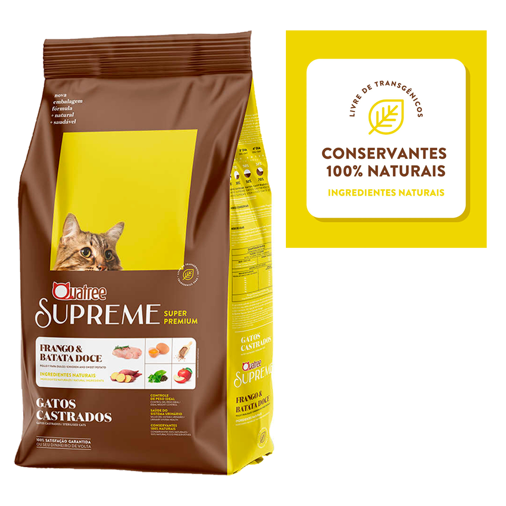 Ração Quatree Supreme para Gatos Castrados sabor Frango e Batata Doce 10.1 Kg
