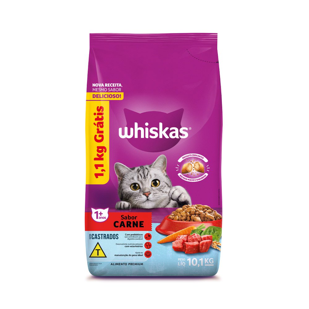 Ração Whiskas Para Gatos Adultos Castrados Sabor Carne Leve 10,1kg Pague 9kg