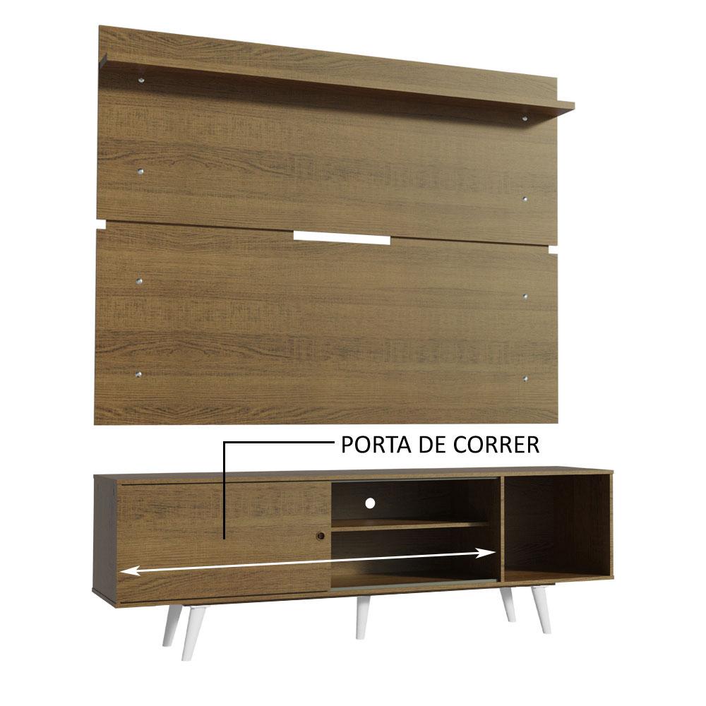 Rack Madesa Dubai e Painel para TV até 65 Polegadas com Pés - Rustic/Branco