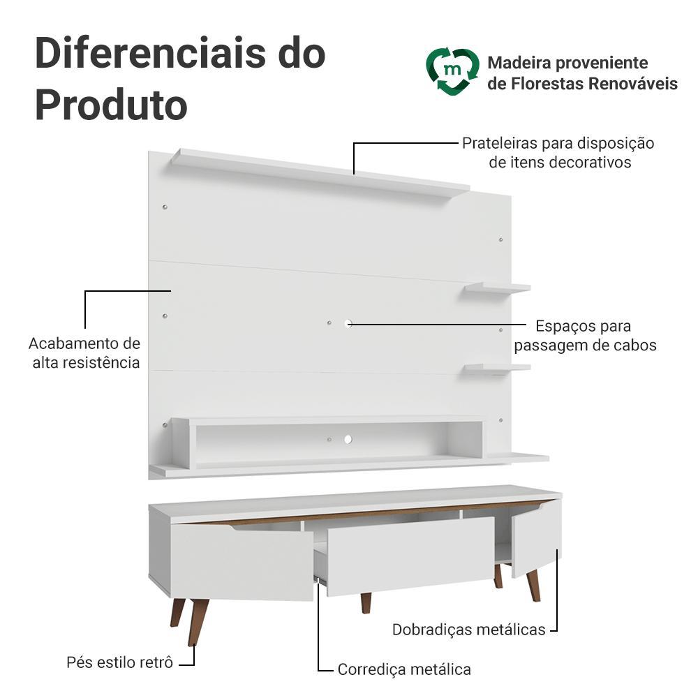 Rack com Painel para TV até 60 Polegadas 180 cm com Pés Branco/Rustic Reims Madesa