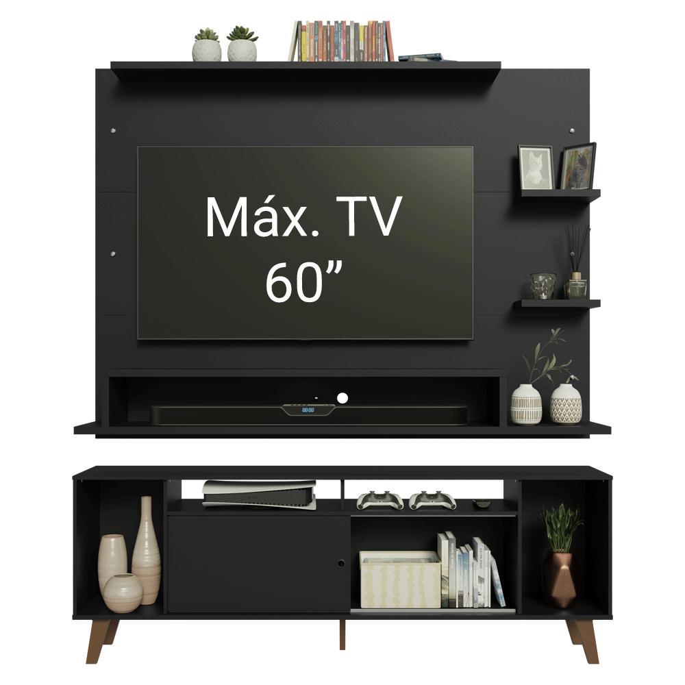 Rack com Painel para TV até 60 Polegadas 180 cm com Pés Preto/Rustic Cancun Madesa