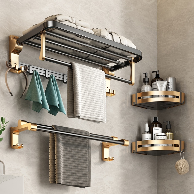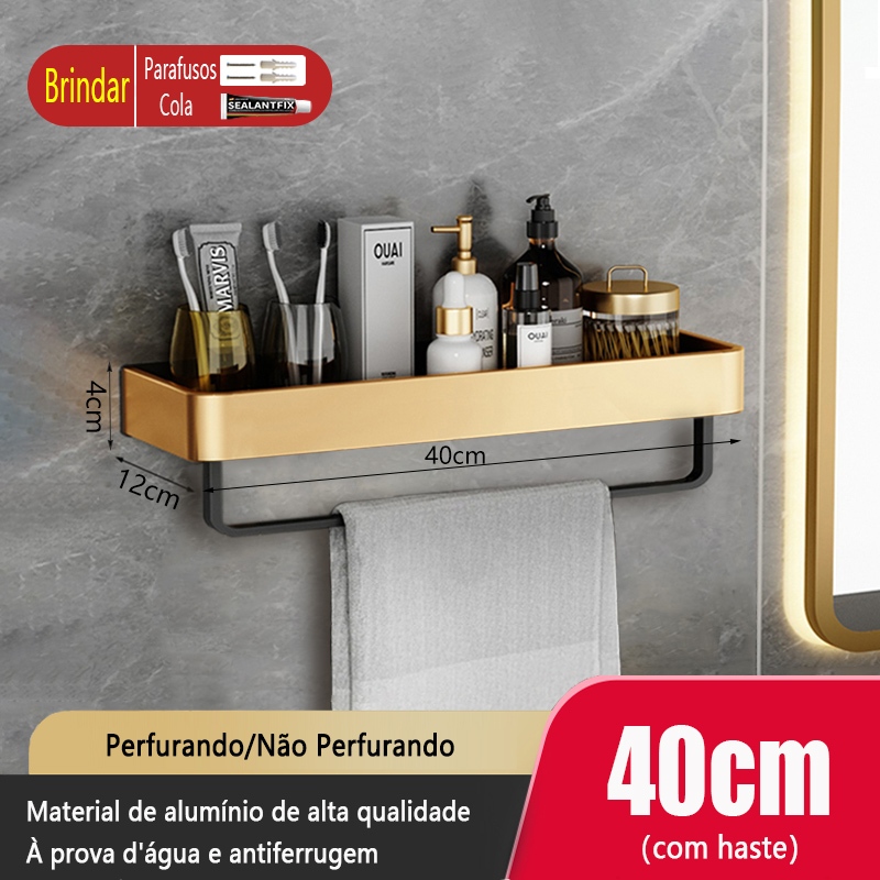Rack de armazenamento de banheiro em alumínio dourado preto MEIDOO