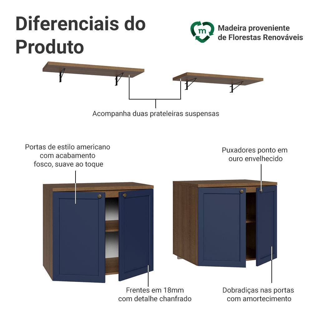 Rack para TV até 70 Polegadas + Prateleiras 160cm Rustic/Azul Vik Madesa 05