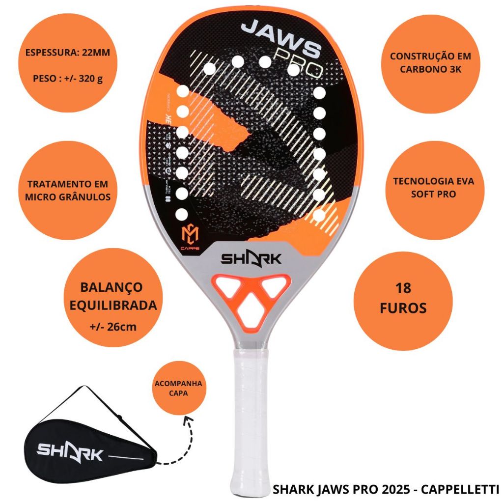 Raquete Beach Tennis Shark Jaws Pró Carbono 3k - By Michele Cappelletti + tratamento em quartzo