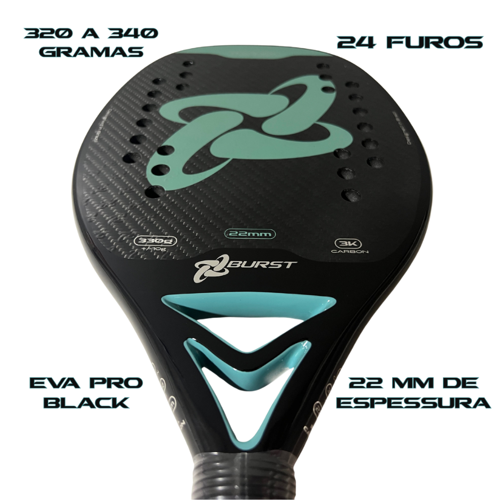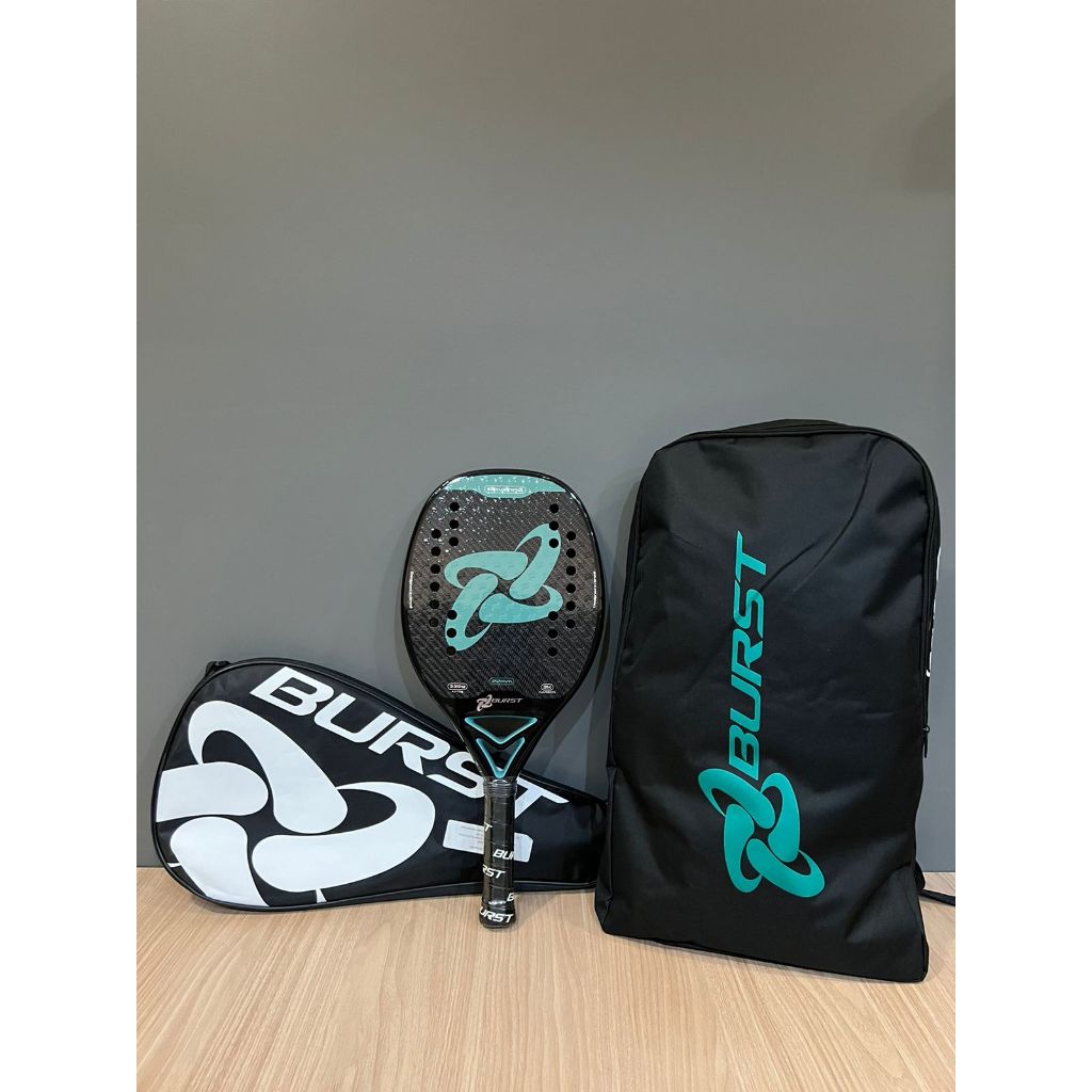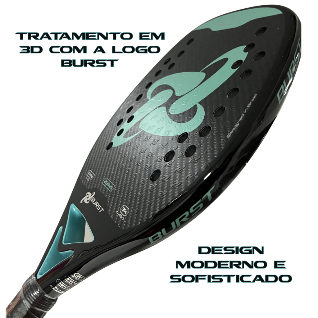 Raquete Burst Beach Tennis Ravenna Full Carbono 3K Verde Com Capa Protetora e Mochila Personalizada