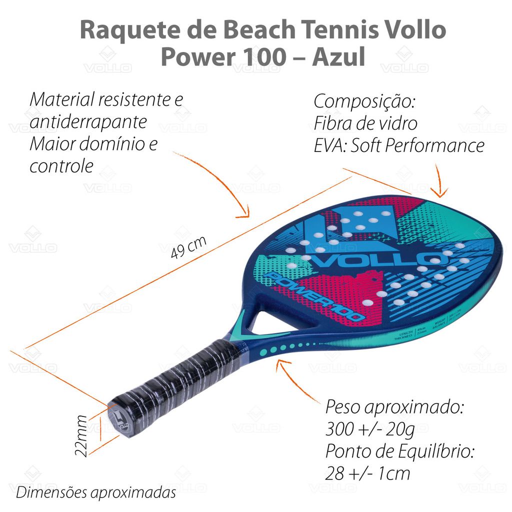 Raquete de Beach Tennis Power 100 Azul Vollo
