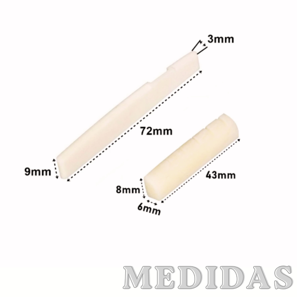 Rastilho e pestana nut 100% osso animal para violão aço folk 43 x 72 mm