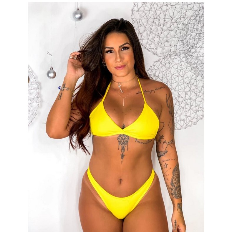 Razzou Biquíni Duas Peças Feminino Sutiã Bojo Removível Calcinha Semi Fio Duplo Tamanho P ao GG