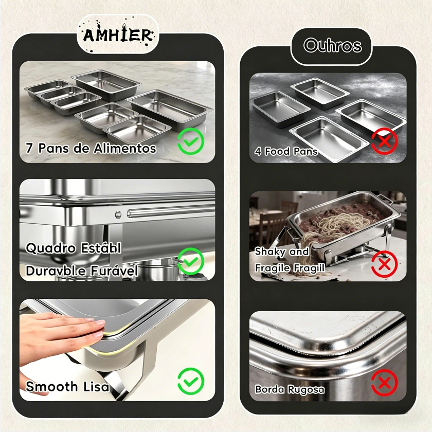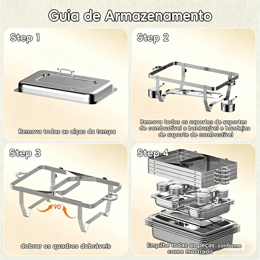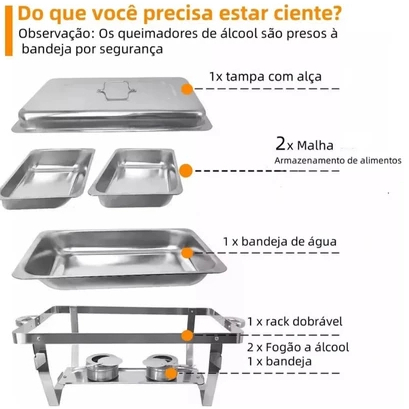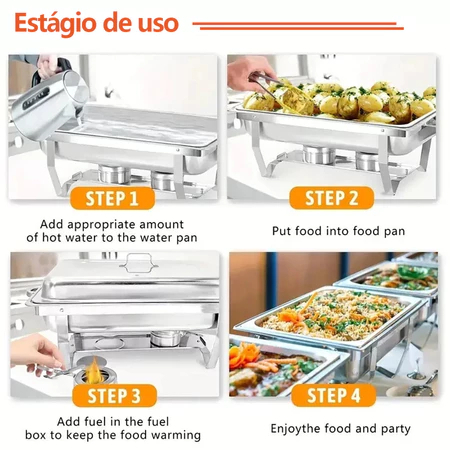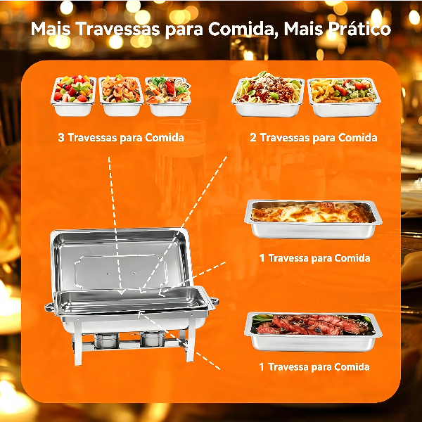 Rechaud Profissional Inox 12L com 1, 2 ou 3 Divisórias para Buffet Festas Eventos