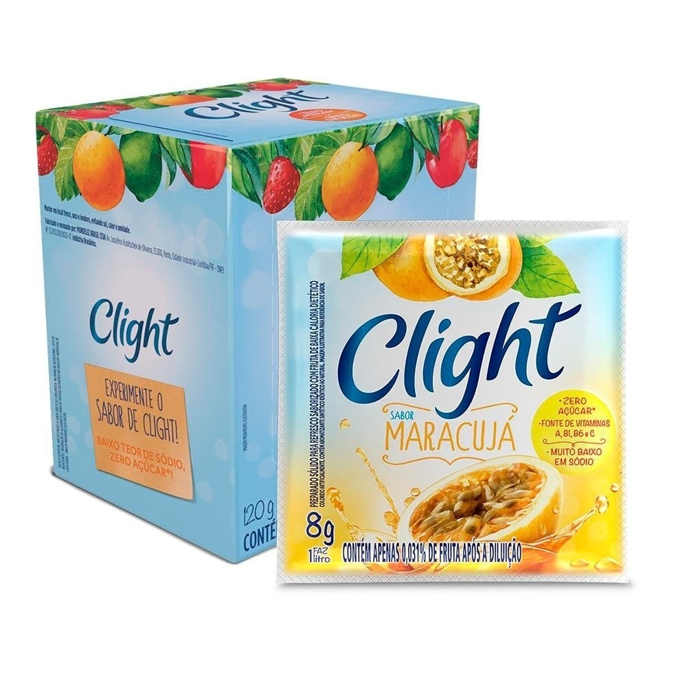 Refresco em Pó Clight sem Açúcar de Maracujá 8g - Display com 15 Unidades